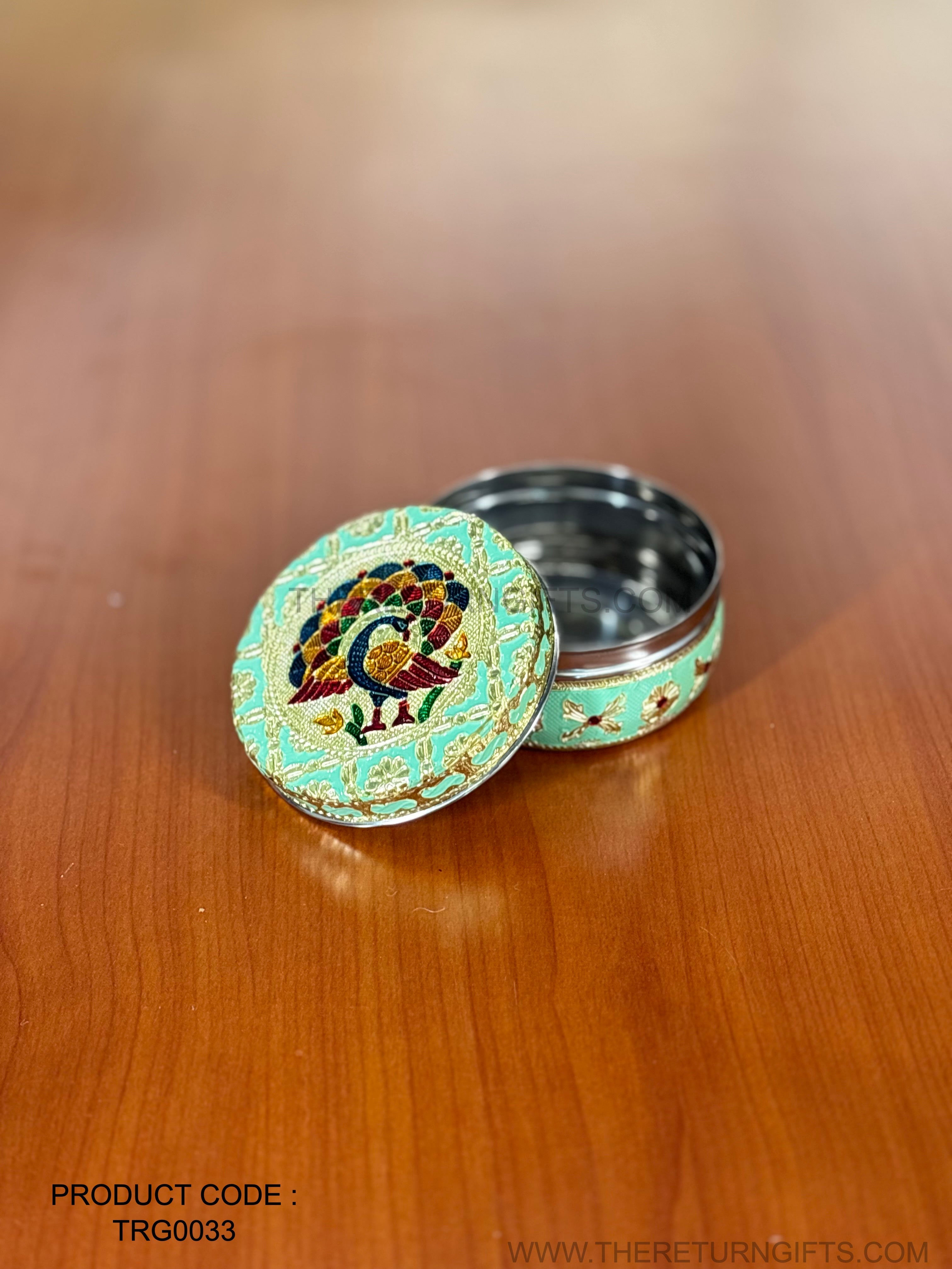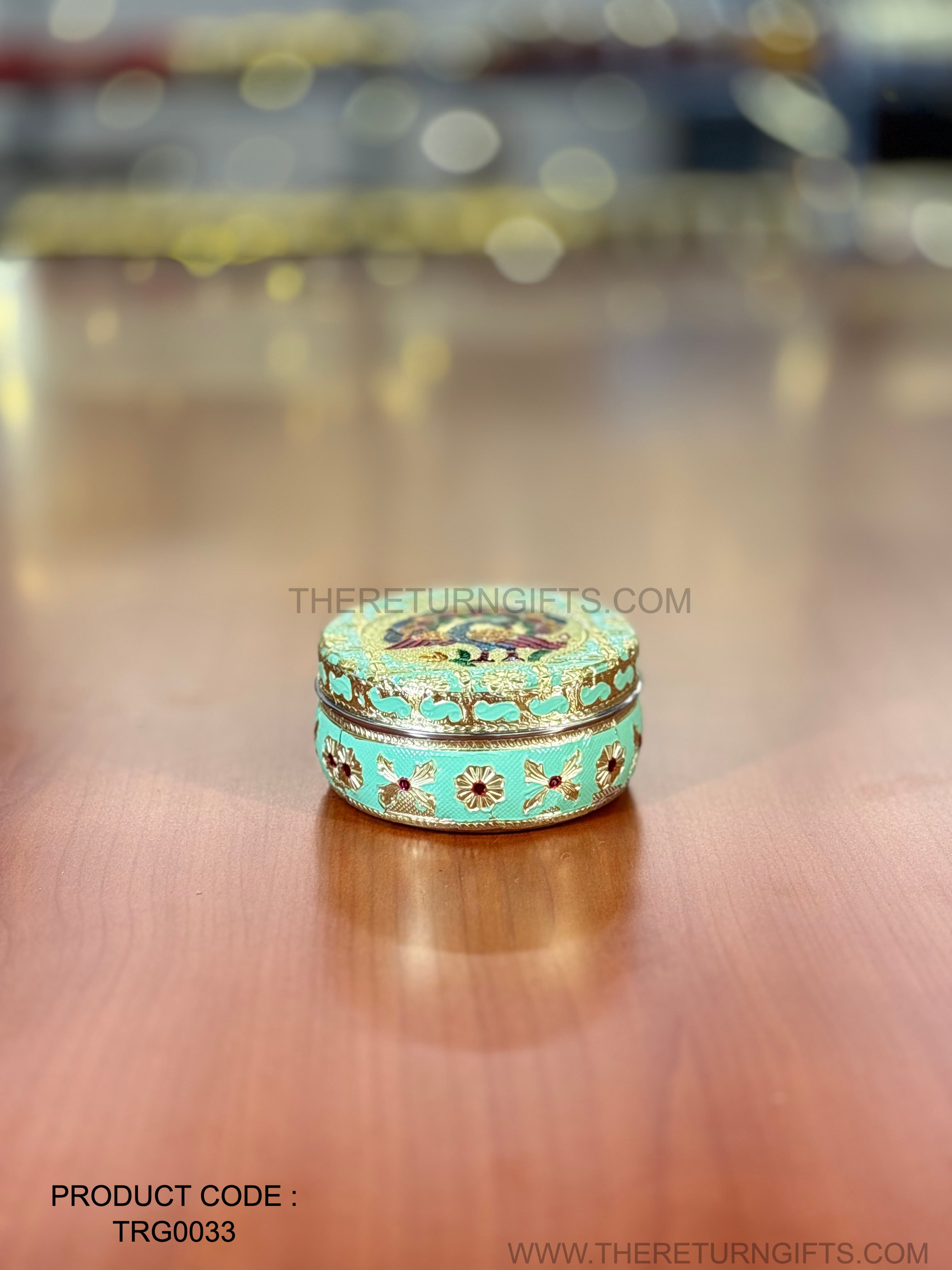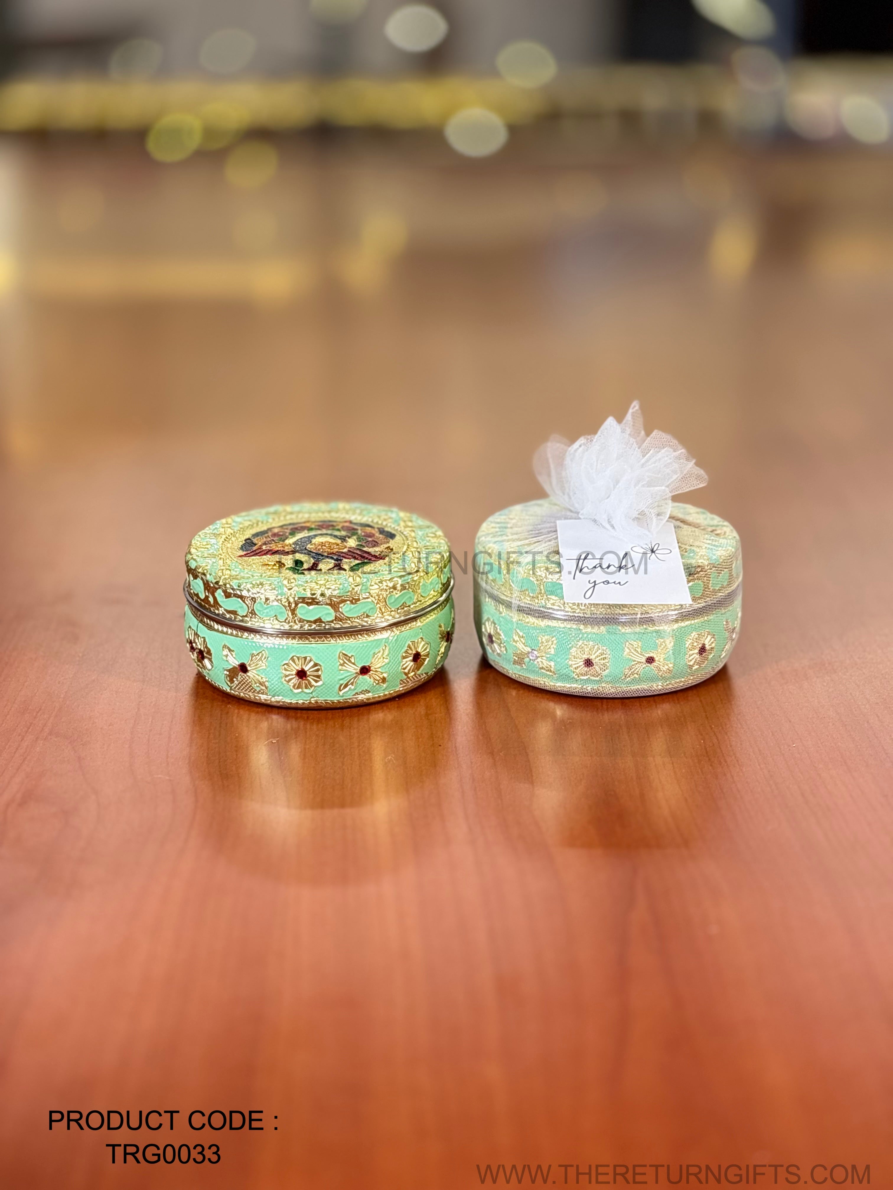 4" Green Meenakari Box | TRG0033 | 4 Inch Round Green Meenakari Stainless Steel Box Under ₹200 | Traditional Wedding, Pooja & Festive Return Gift