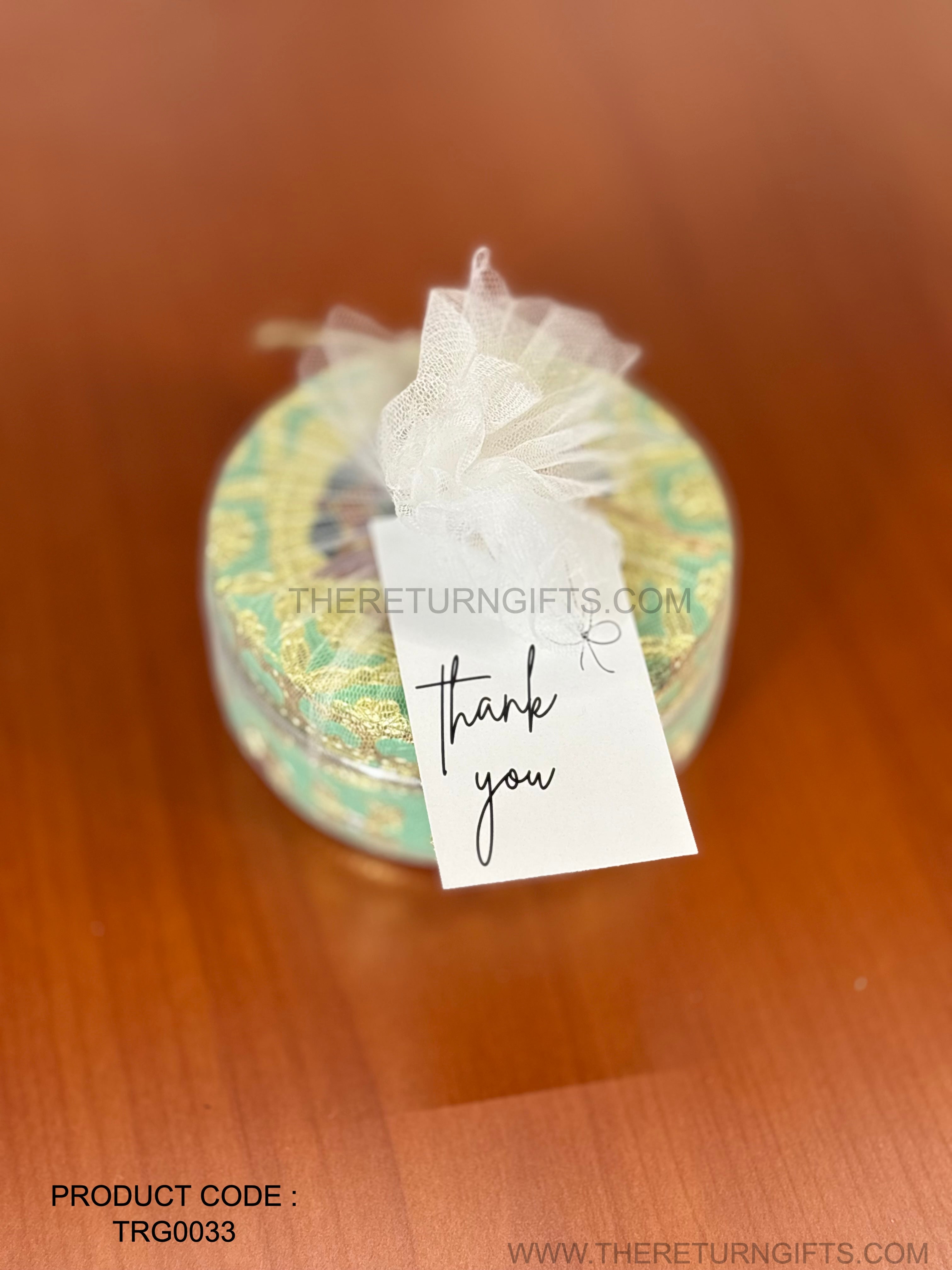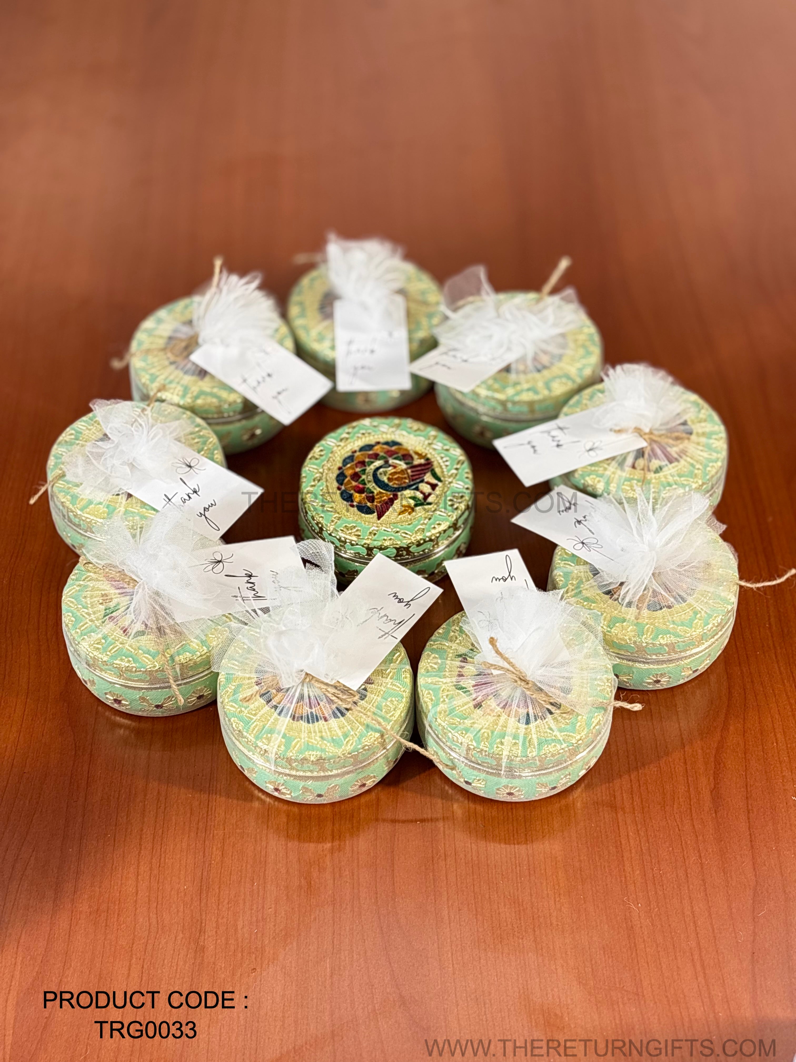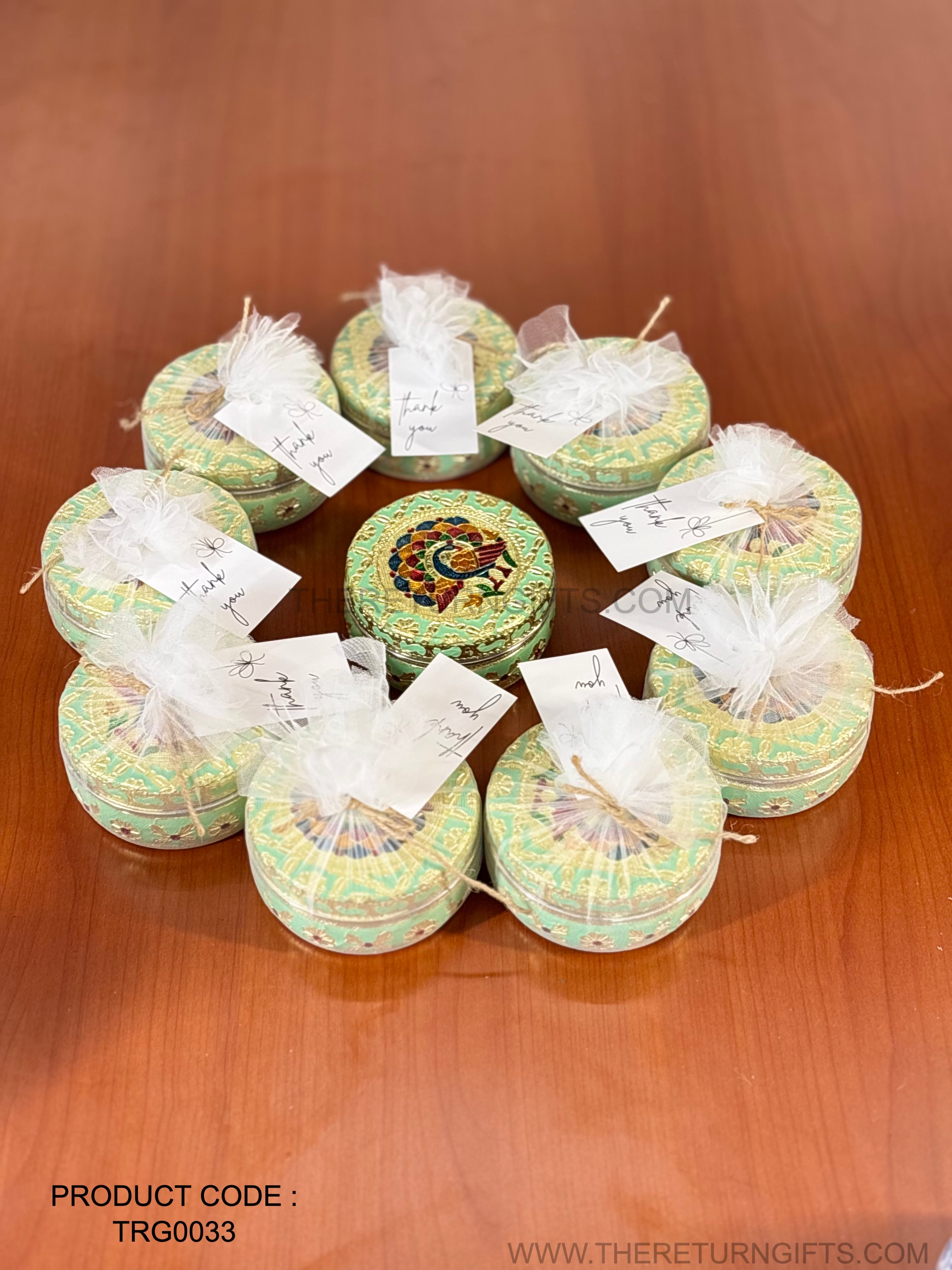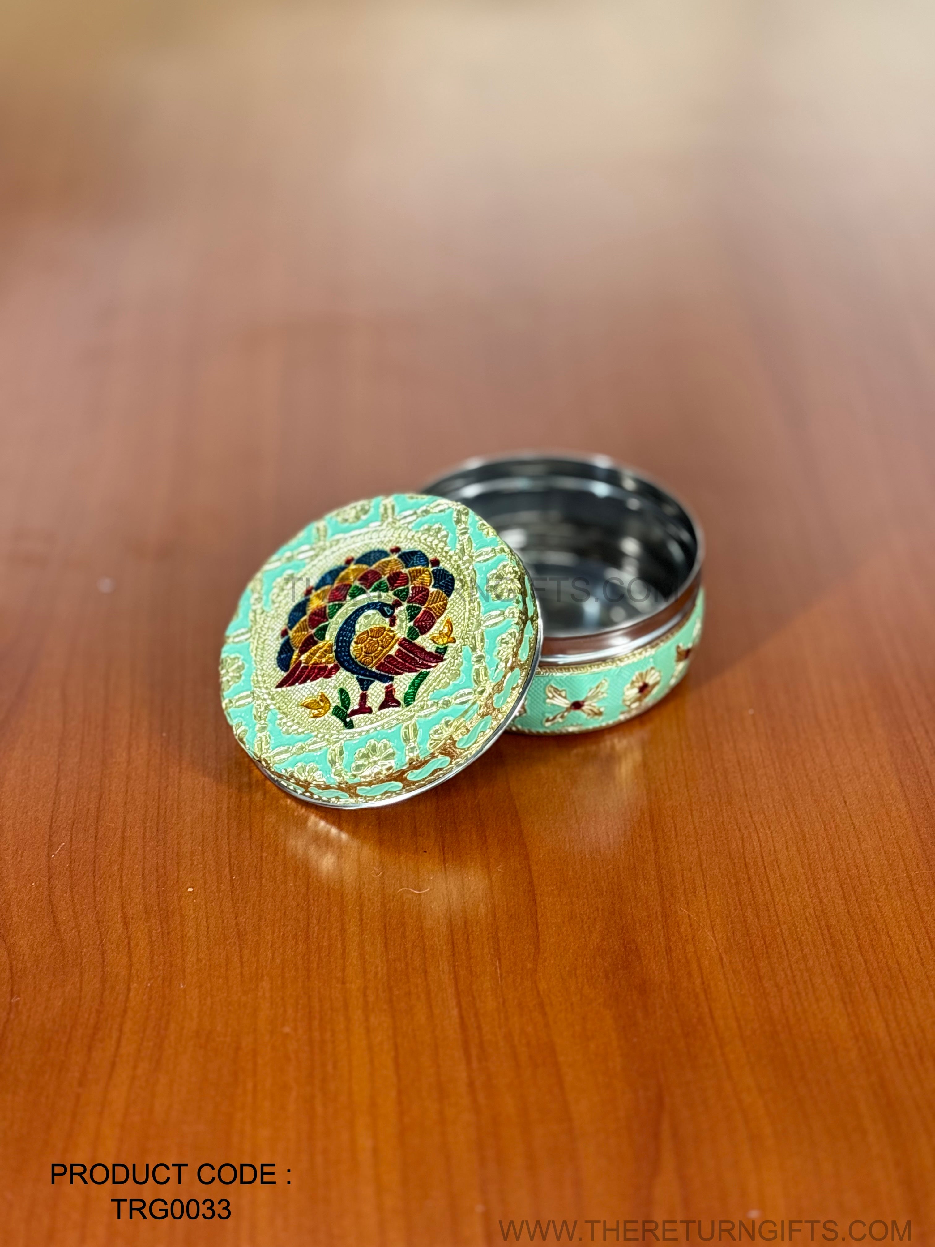 4" Green Meenakari Box | TRG0033 | 4 Inch Round Green Meenakari Stainless Steel Box Under ₹200 | Traditional Wedding, Pooja & Festive Return Gift