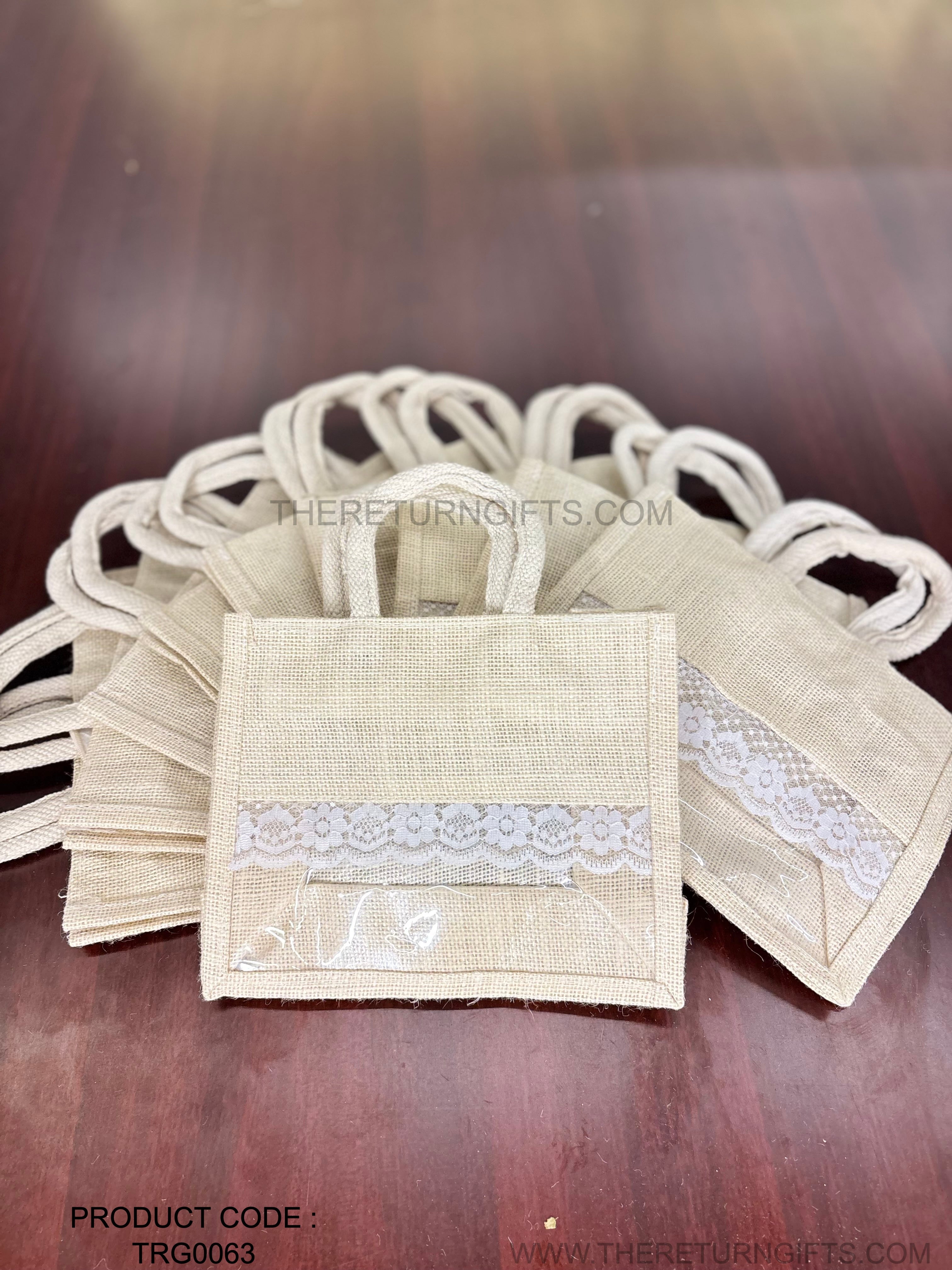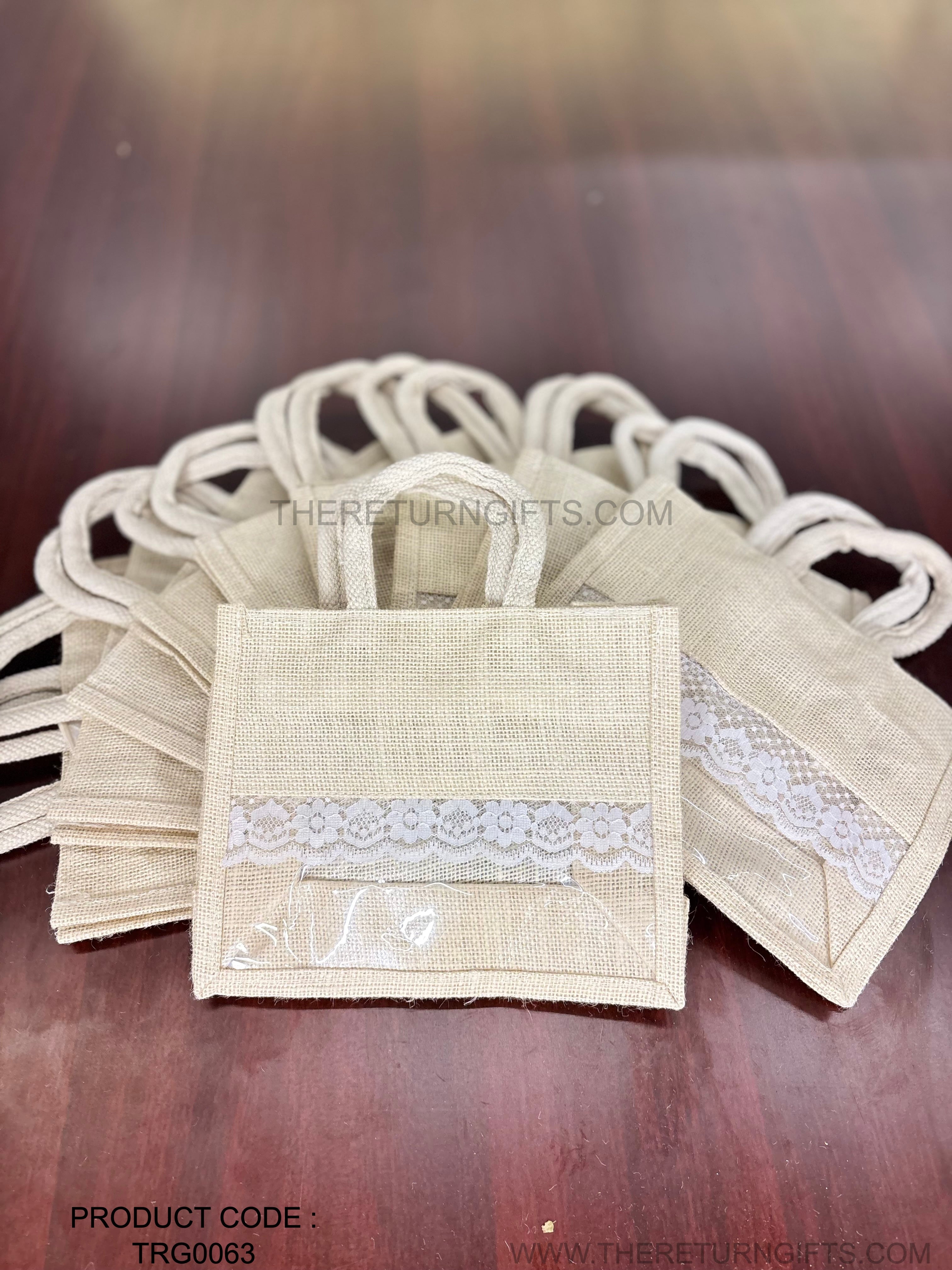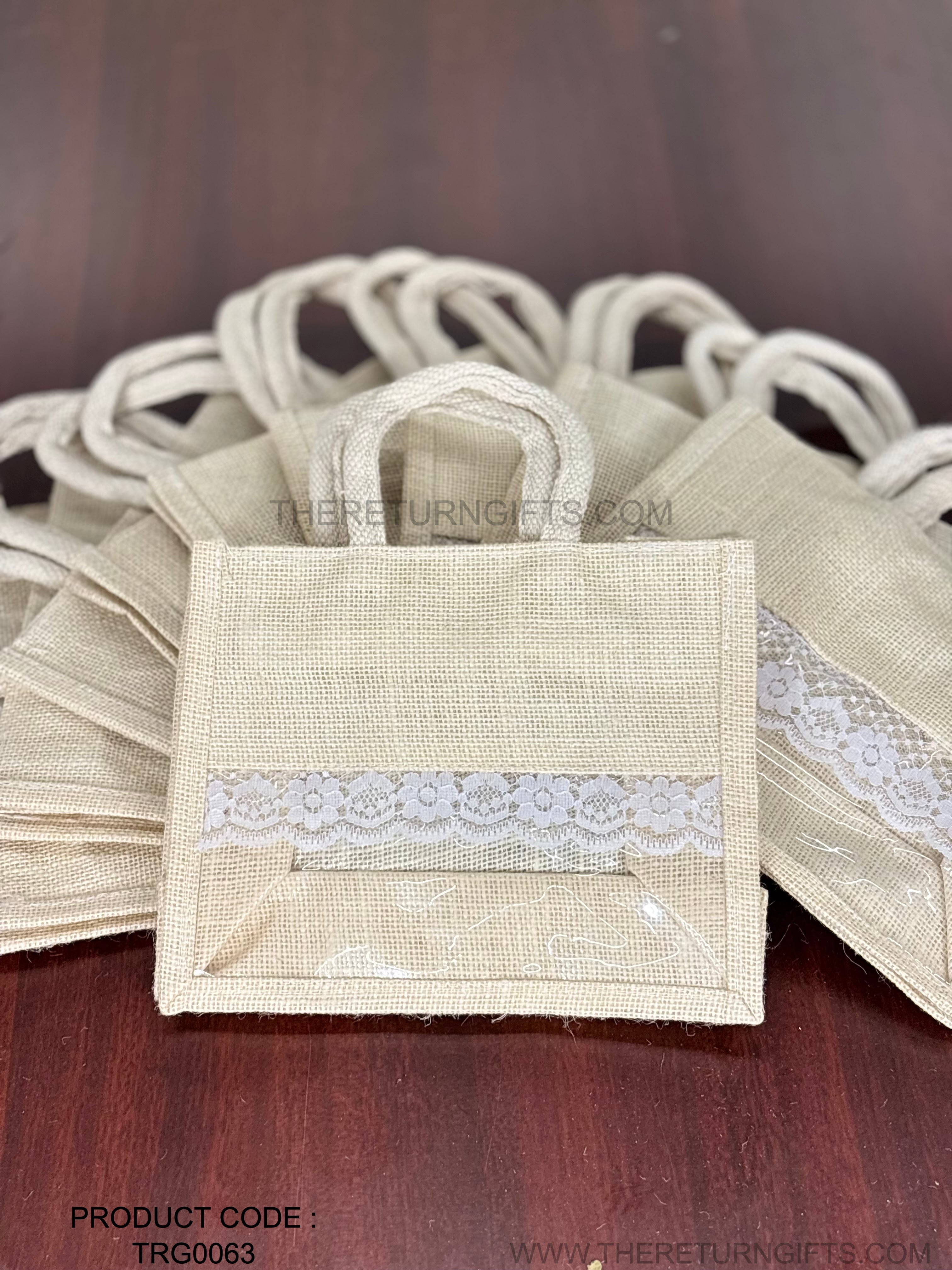 Beige Small Jute Bag with Transparent Window | TRG0063 | Small Jute Gift Bag Under ₹150 | Eco‑Friendly Wedding & Housewarming Favor Bag