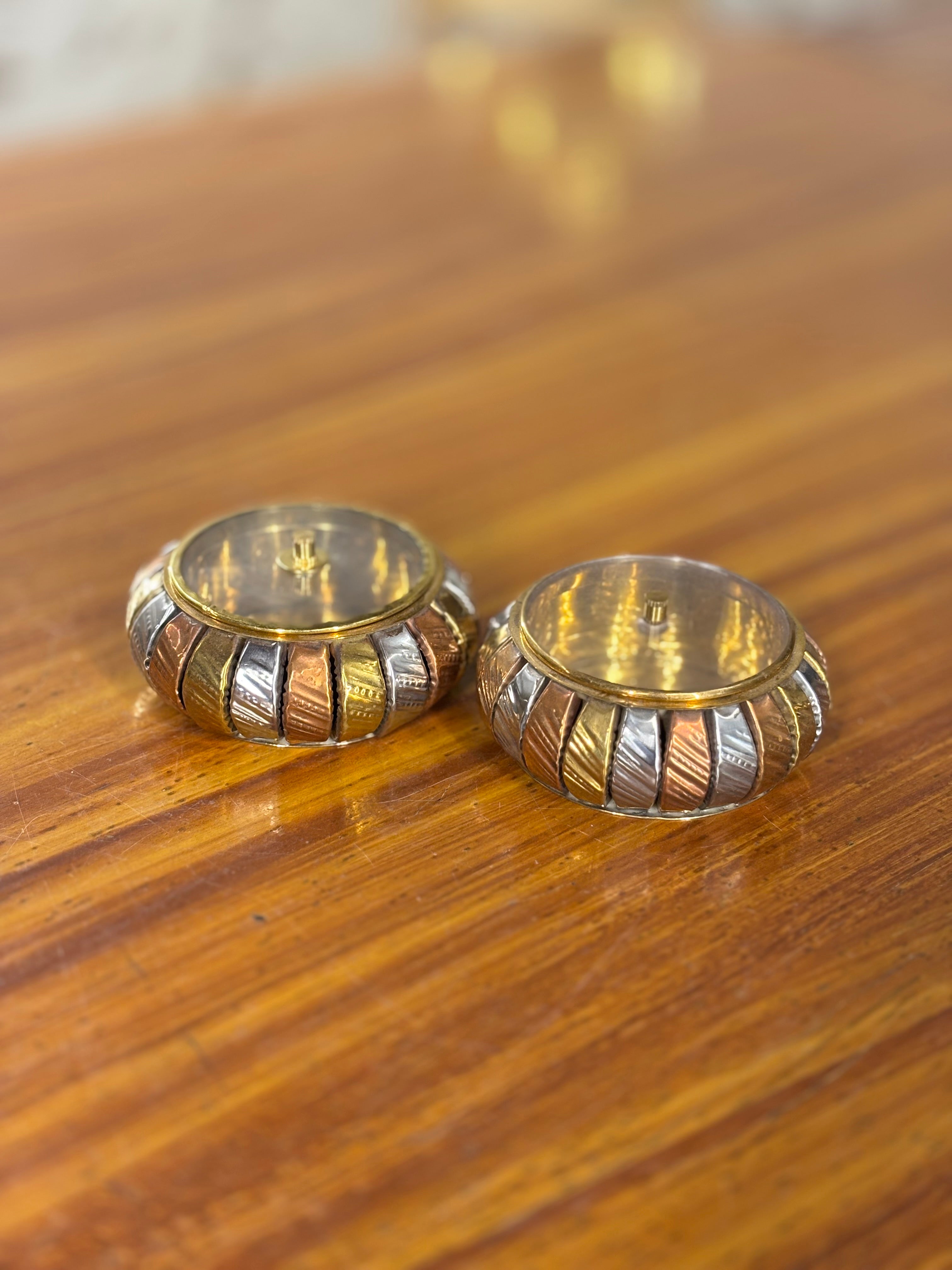 Add a touch of timeless tradition and luxury to your celebrations with our Elegant Brass Bowl Set. Expertly handcrafted by skilled artisans, this beautiful brass piece features a golden interior with a unique dual-metal rim design blending copper and silver tones for a sophisticated look.