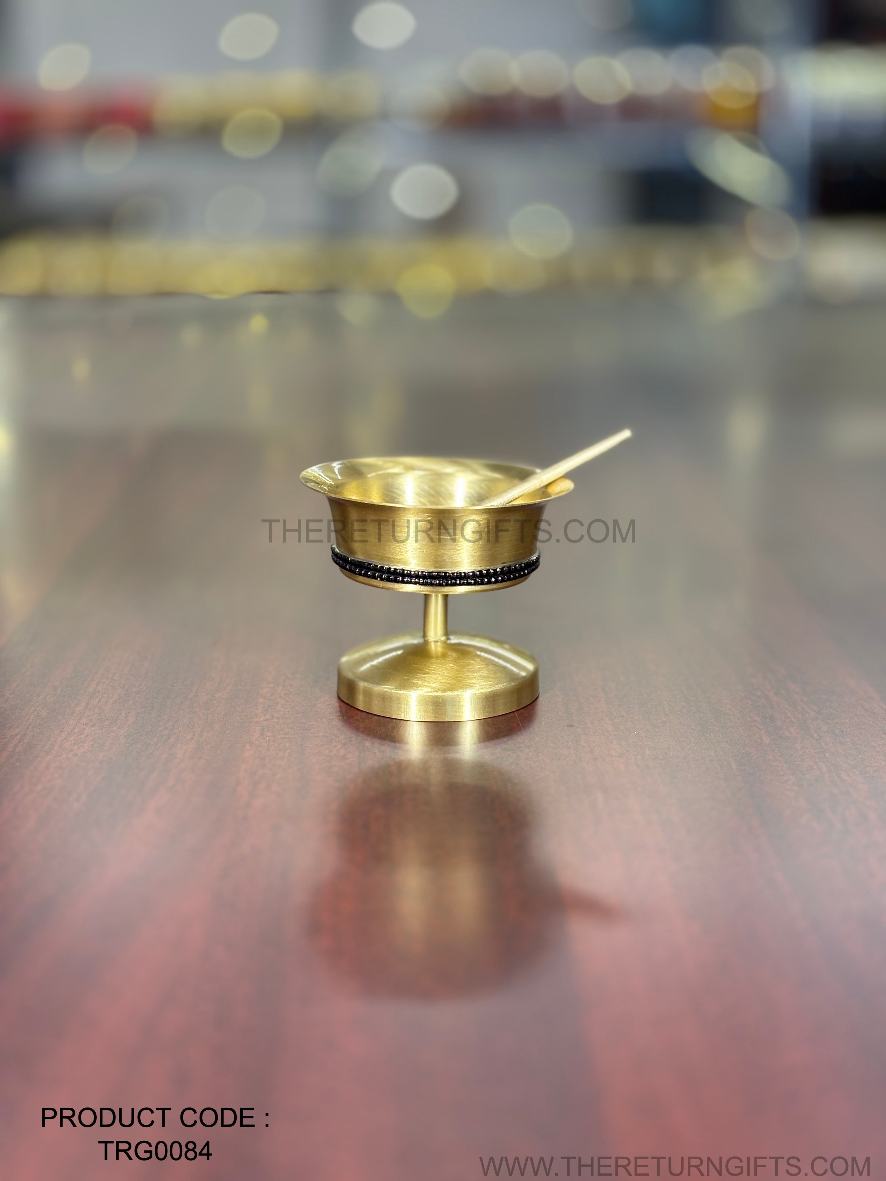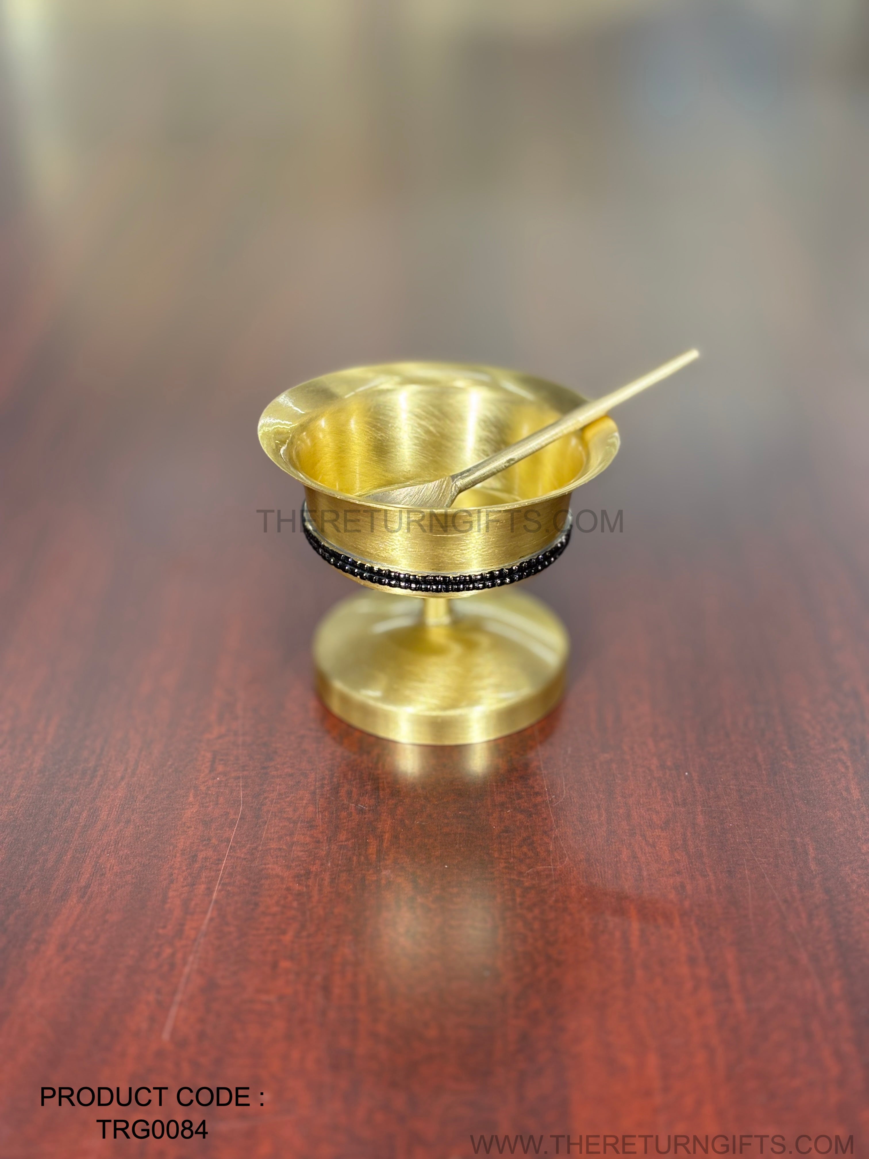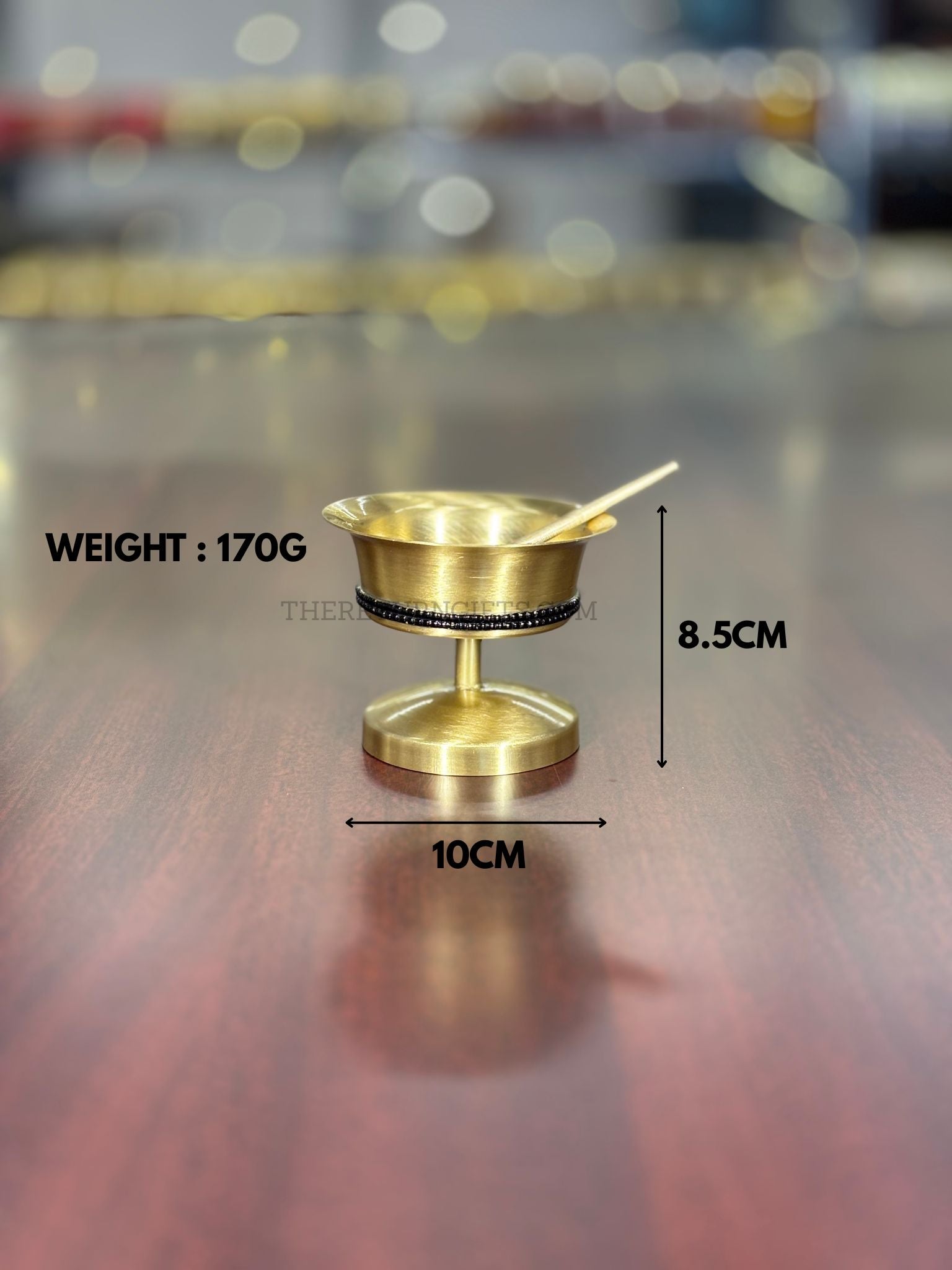 Brass Dessert Bowl Stone Work with Spoon | TRG0084 | Stone‑Studded Brass Dessert Bowl & Spoon Gift Set Under ₹800 | Elegant Sweet Serving Bowl for Wedding & Festive Return Gifts