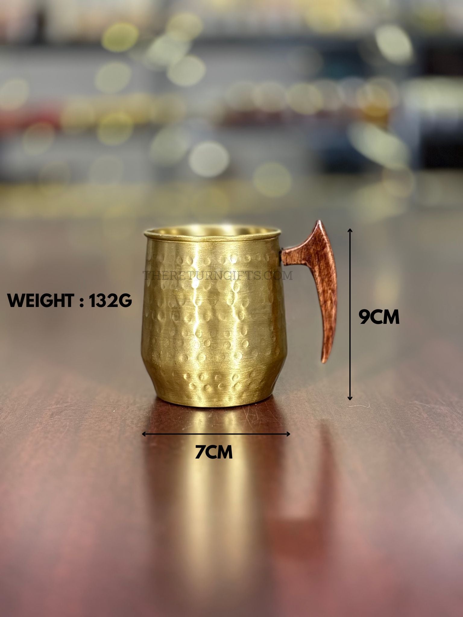 Brass Mug with Wooden Handle | TRG0085 | Brass Coffee / Tea Mug with Wooden Grip Under ₹700 | Premium Beverage Mug & Elegant Wedding Gift