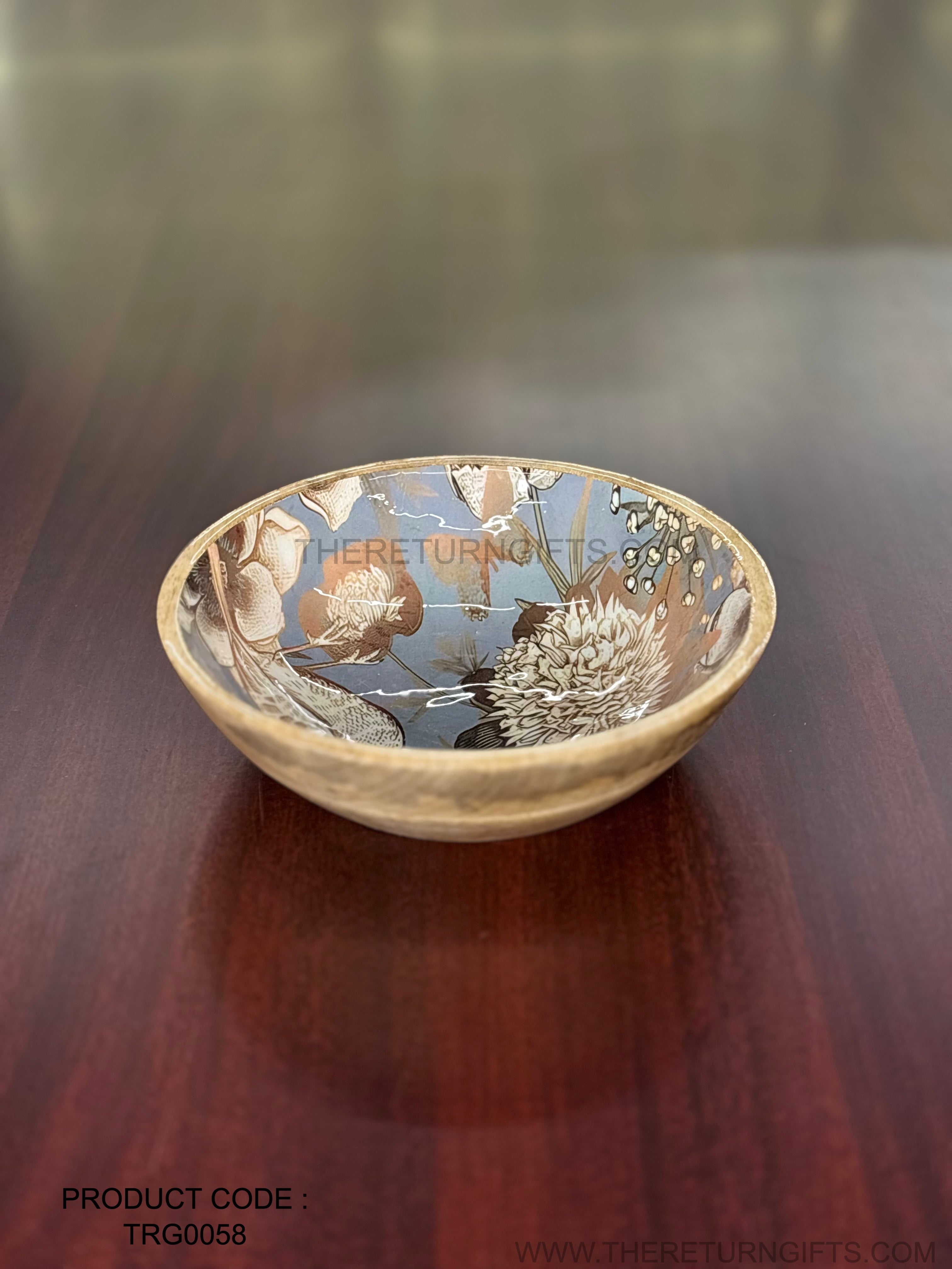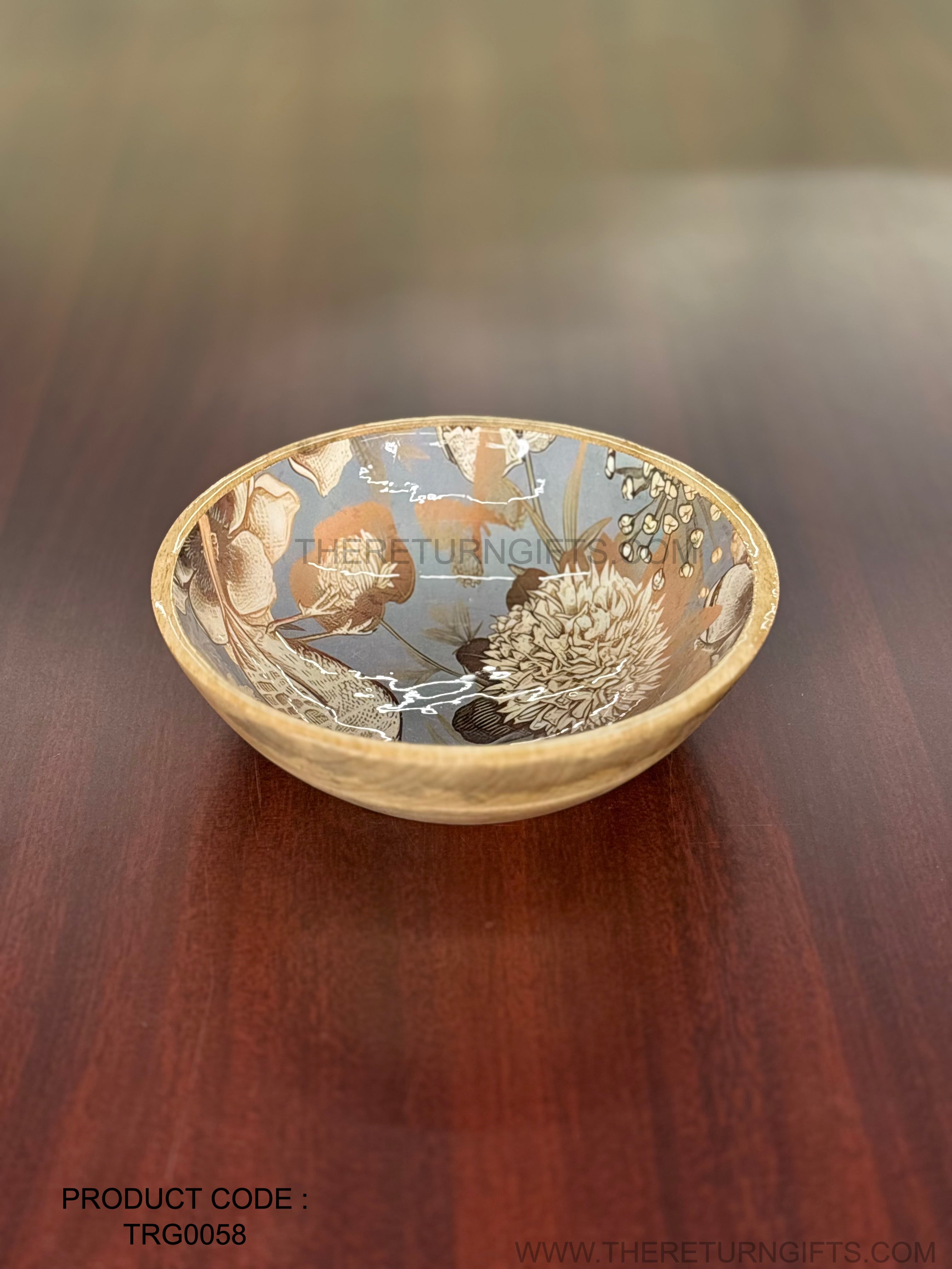 Floral Printed Wooden Bowl XL | TRG0058 | Extra‑Large Printed Wooden Serving Bowl for Salads & Snacks Under ₹600 | Statement Tableware & Premium Return Gift