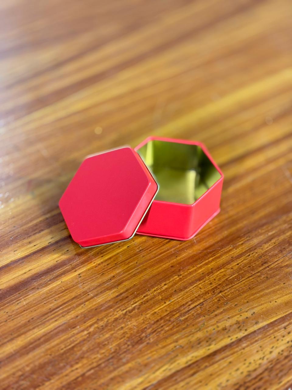 These elegant Hexagon Metal Gift Boxes are the perfect blend of modern style and festive charm. Designed in rich matte shades like pink, lavender, red, and olive green, each box comes with a sleek gold lining that adds a premium finish. Lightweight, durable, and beautifully crafted, these multipurpose boxes are ideal for packaging chocolates, dry fruits, candies, kumkum, earrings, favors, and other small gifts.