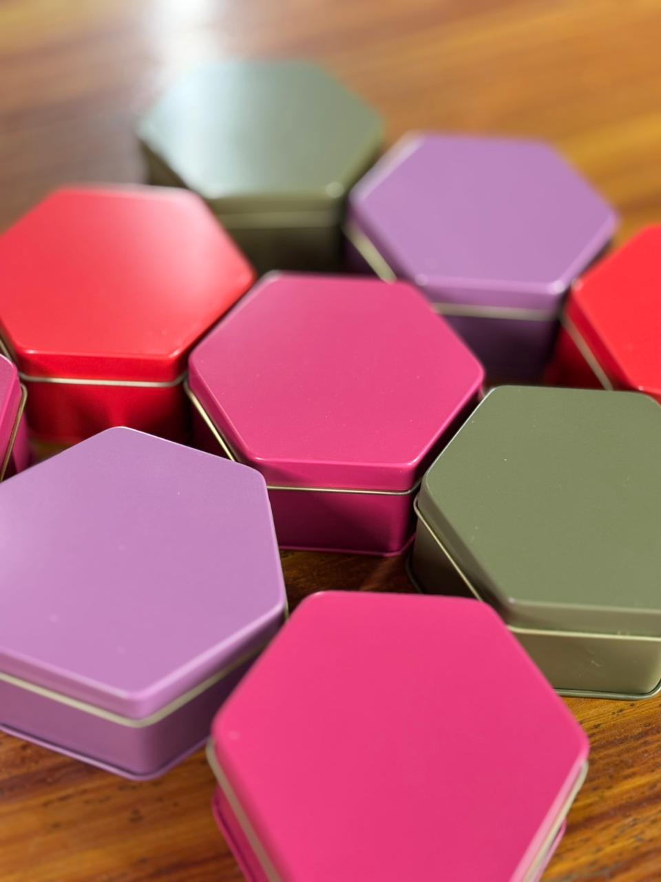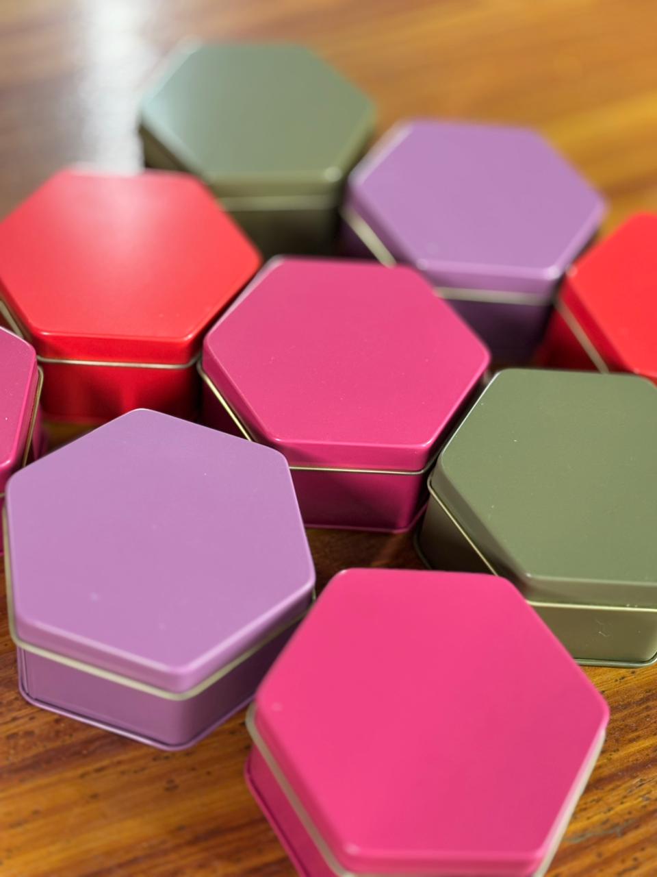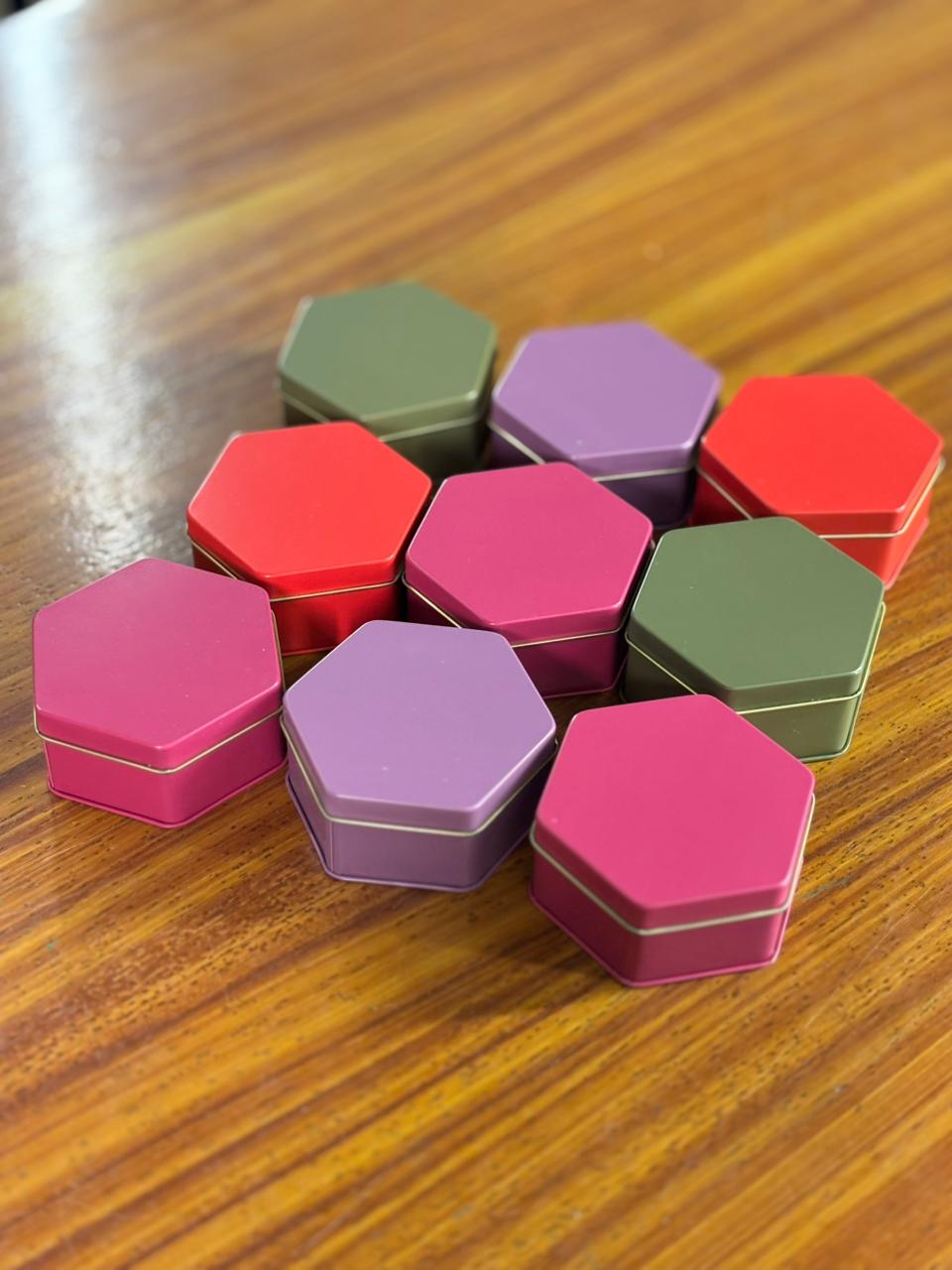Tags: hexagon gift box, metal return gift box, small gift box, wedding favors, baby shower gifts, modern return gifts, chocolate gift box, assorted color boxes, reusable metal box, engagement return gifts, naming ceremony gifts