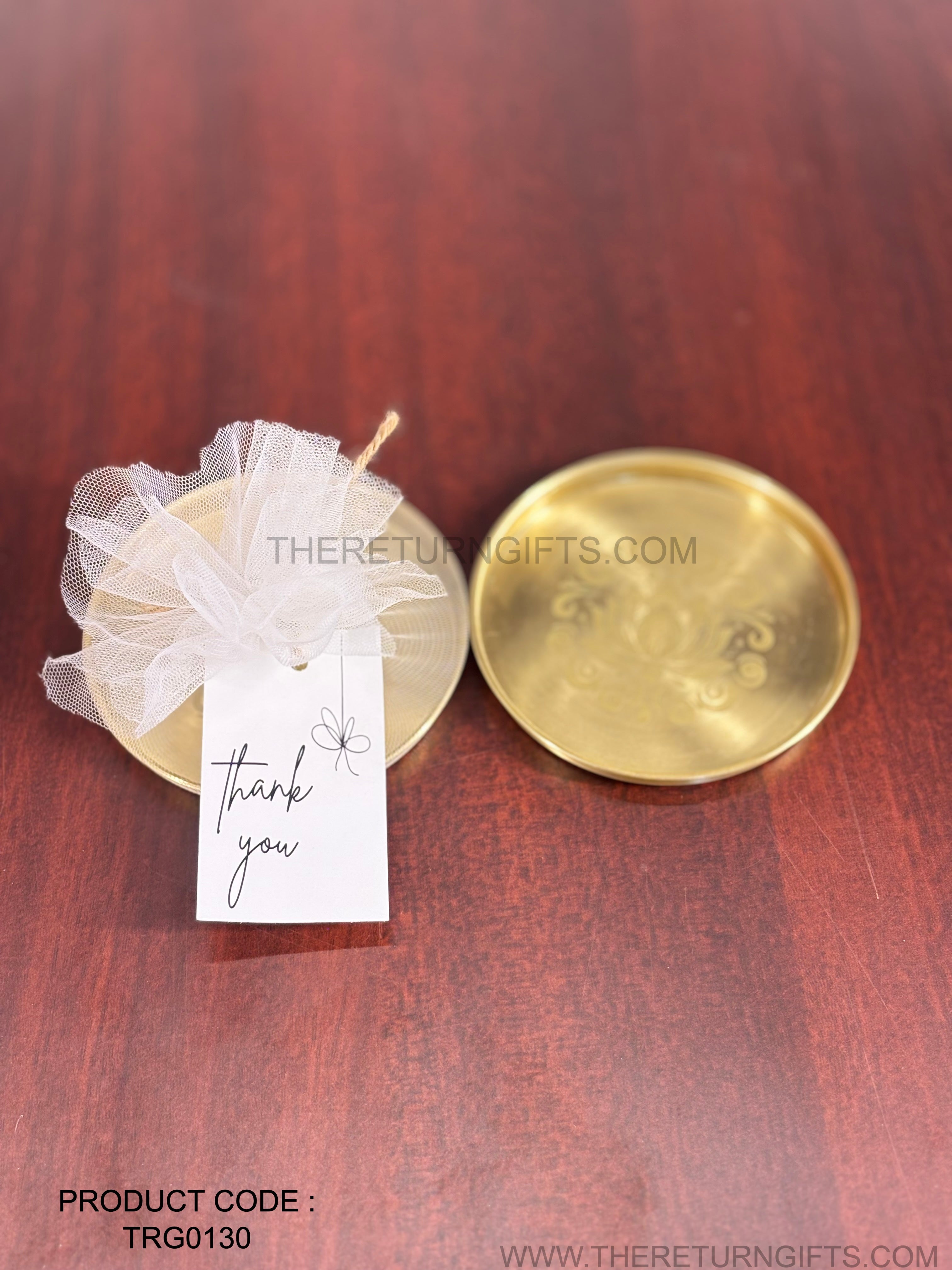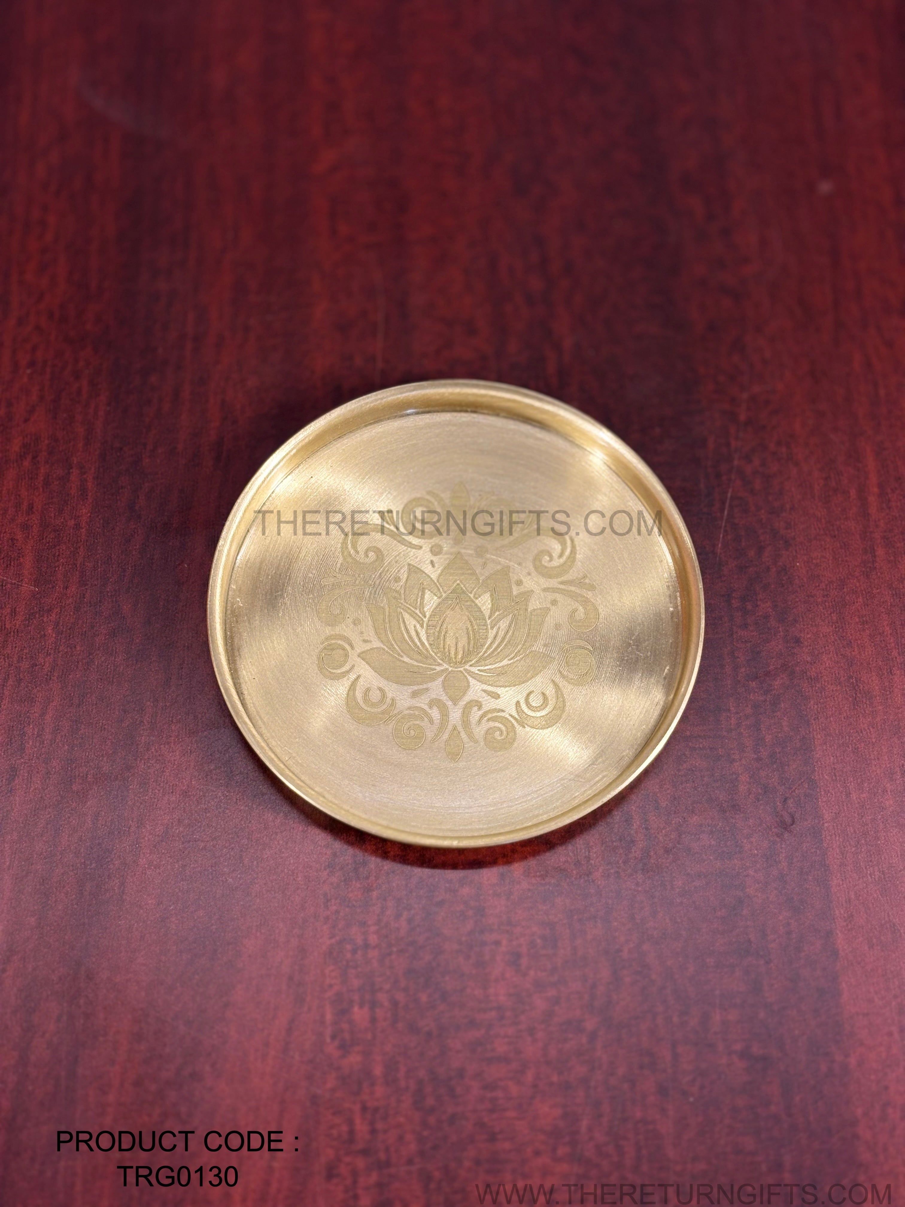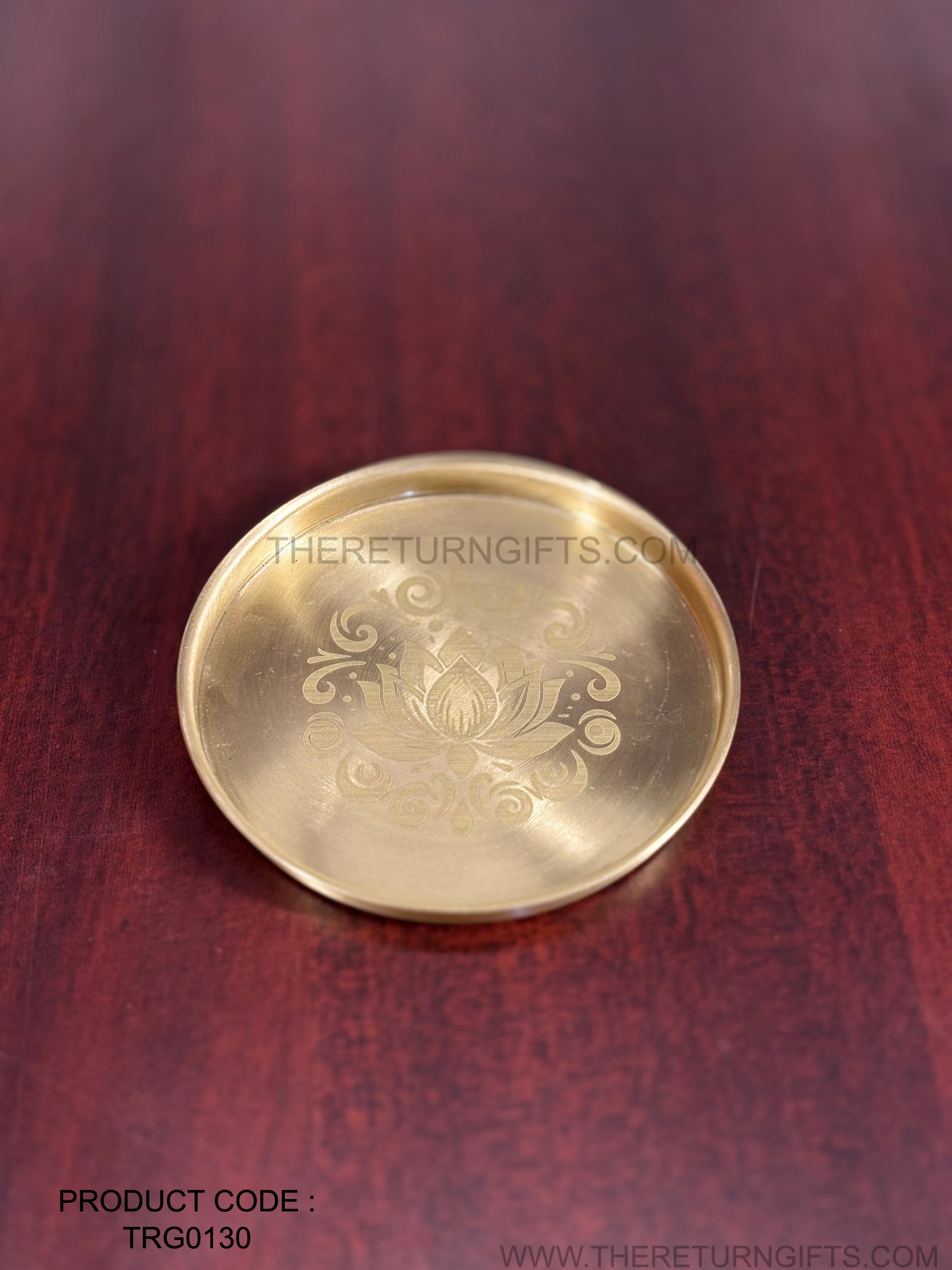 Brass Coasters with Lotus Design Return Gift | TRG0130 | Traditional Brass Housewarming Plate Under ₹400 | Wedding & Housewarming Favor