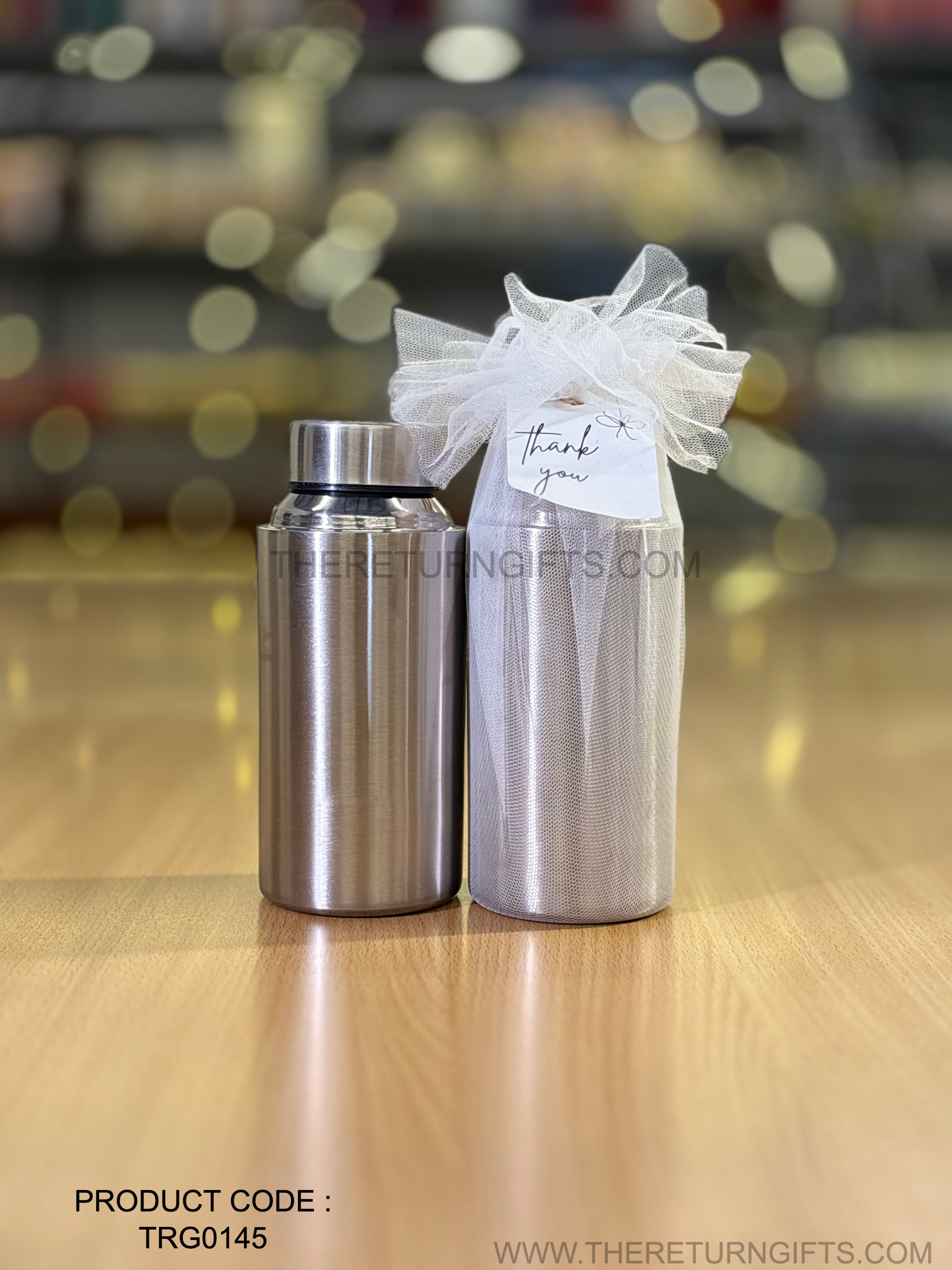 Stainless Steel Mini Water Bottle Return Gift | TRG0145 | Compact Steel Drinking Bottle | Wedding, School & Utility Favor Under ₹200