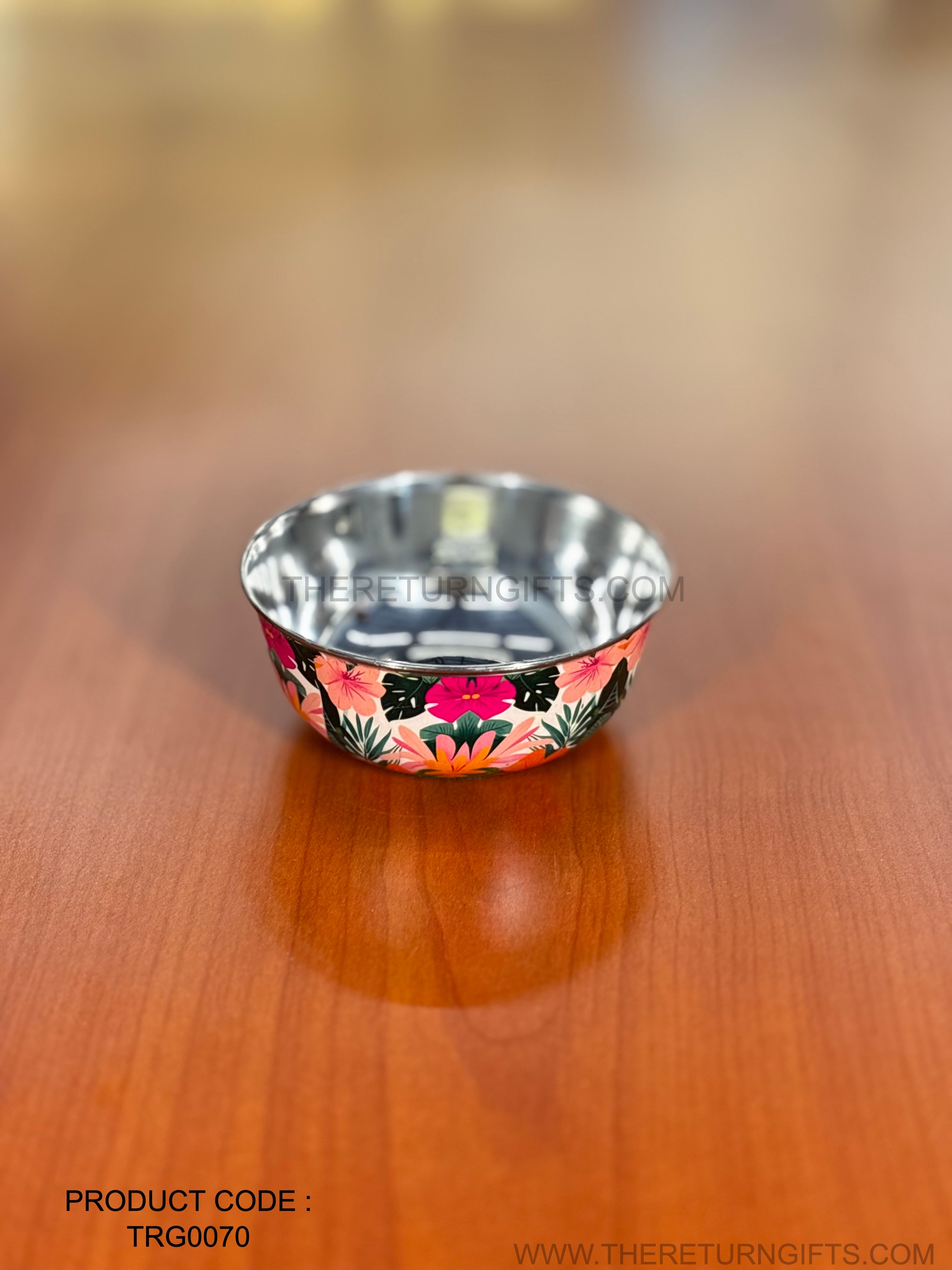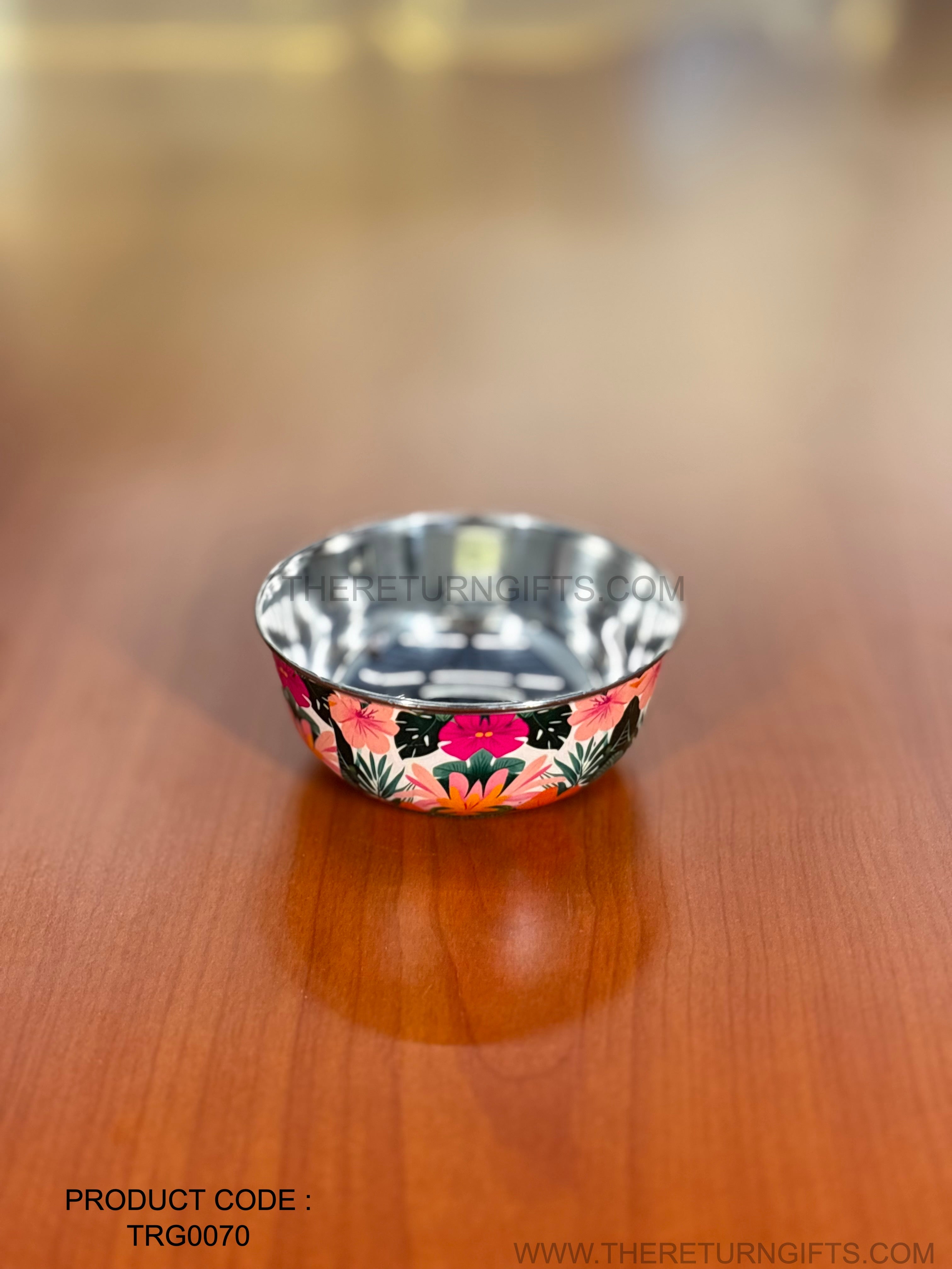 Printed Stainless Steel Bowl | TRG0070 | Floral Printed Steel Bowl Under ₹200 | Daily Use Snack Bowl & Budget Wedding Return Gift