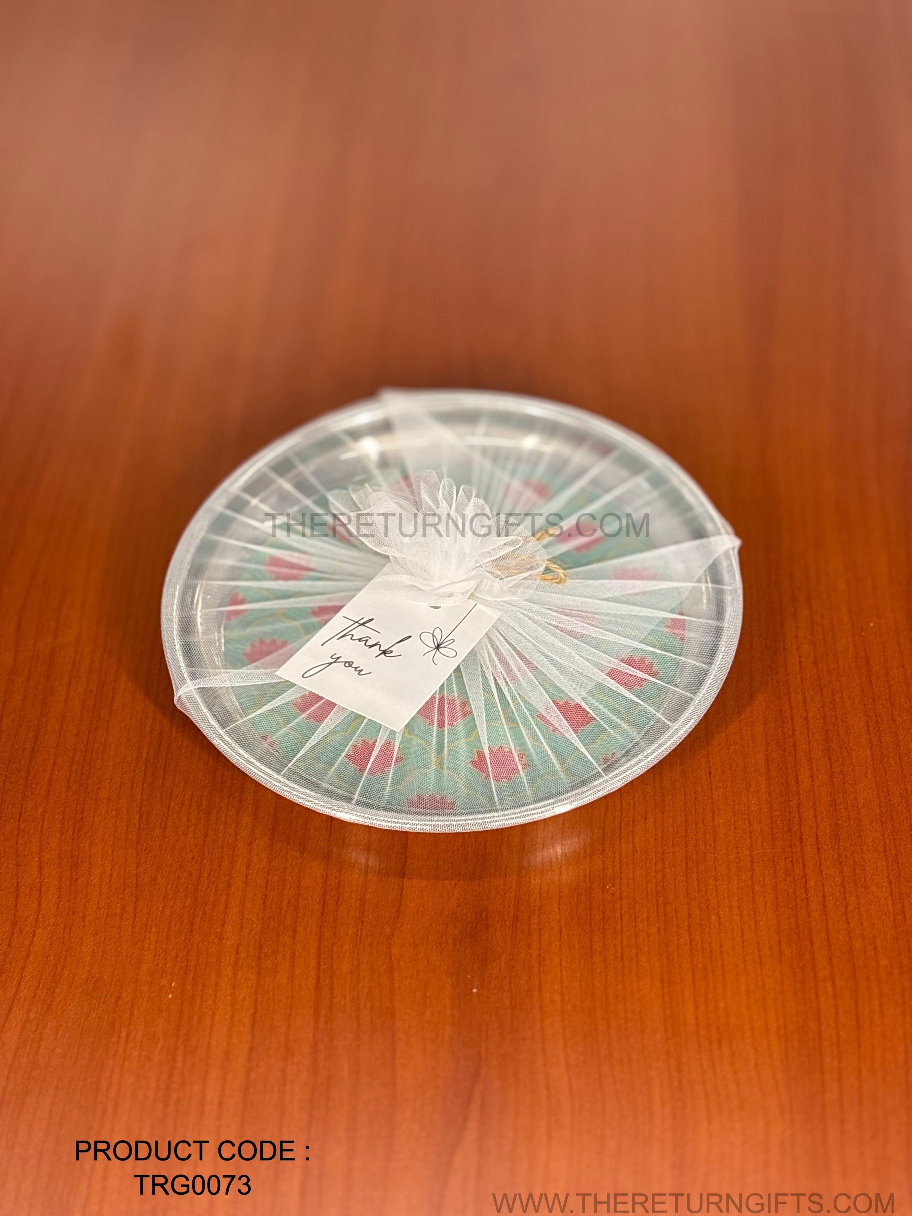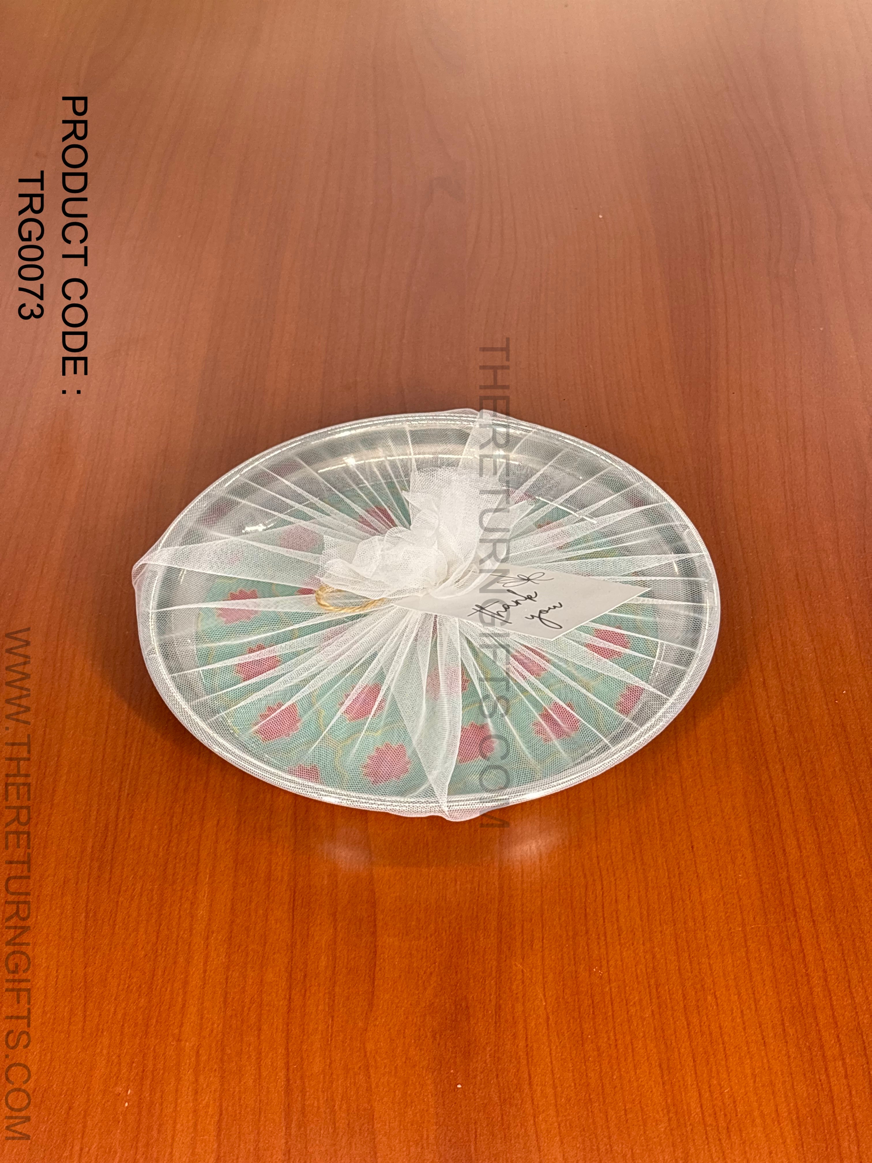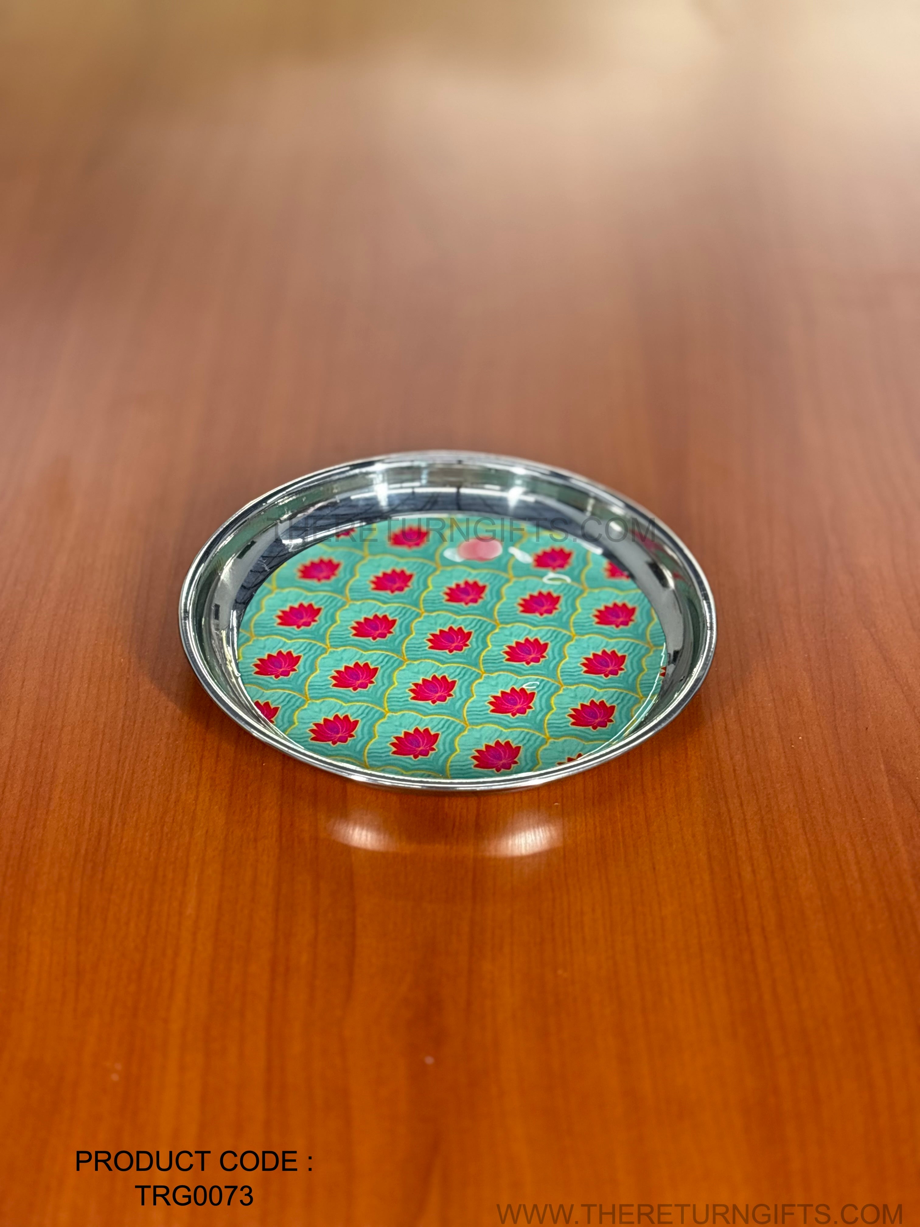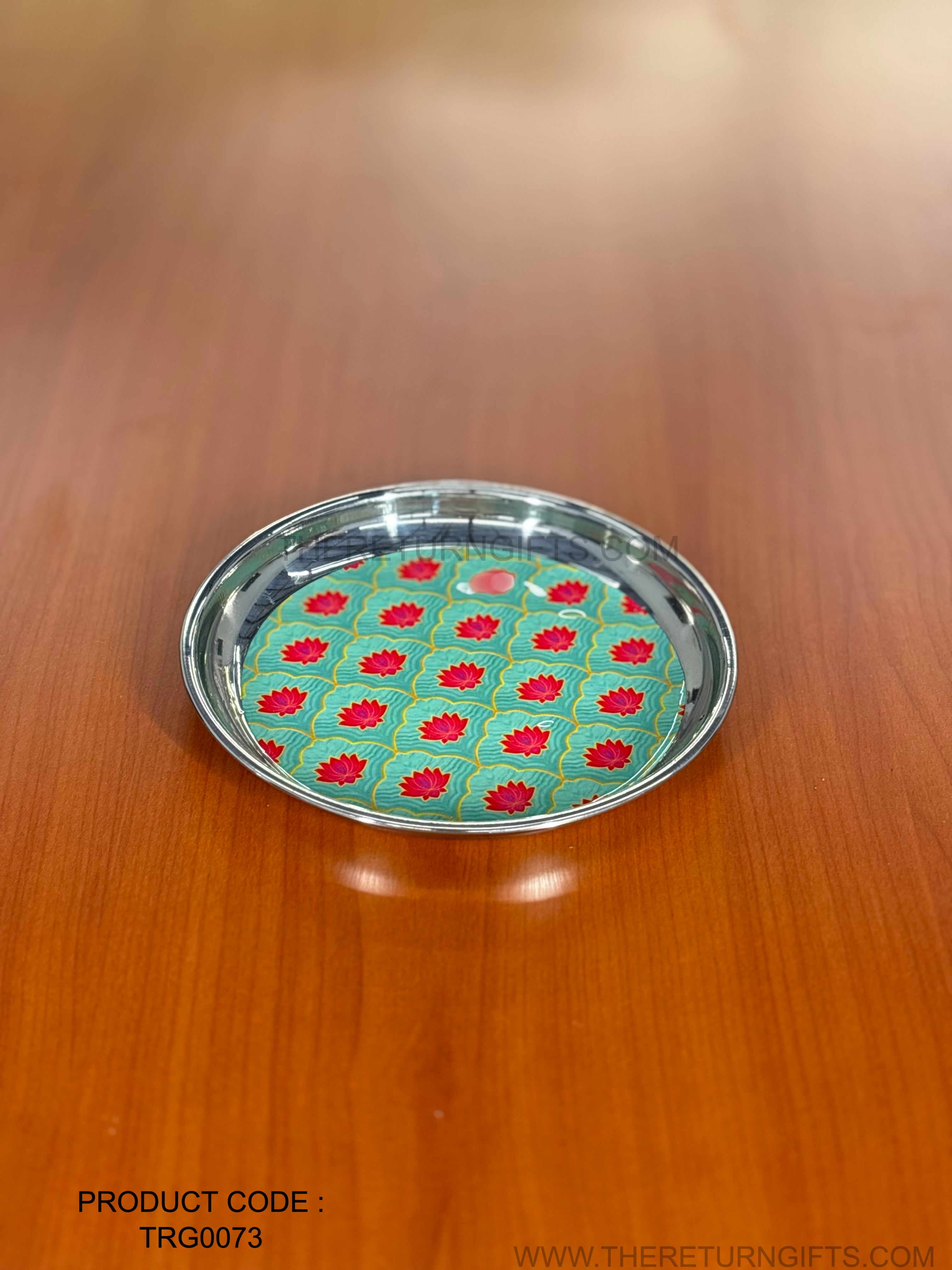 Printed Stainless Steel Plate | TRG0073 | Decorative Printed Steel Dinner / Pooja Plate Under ₹300 | Meenakari Style Steel Plate for Wedding & Festive Return Gifts