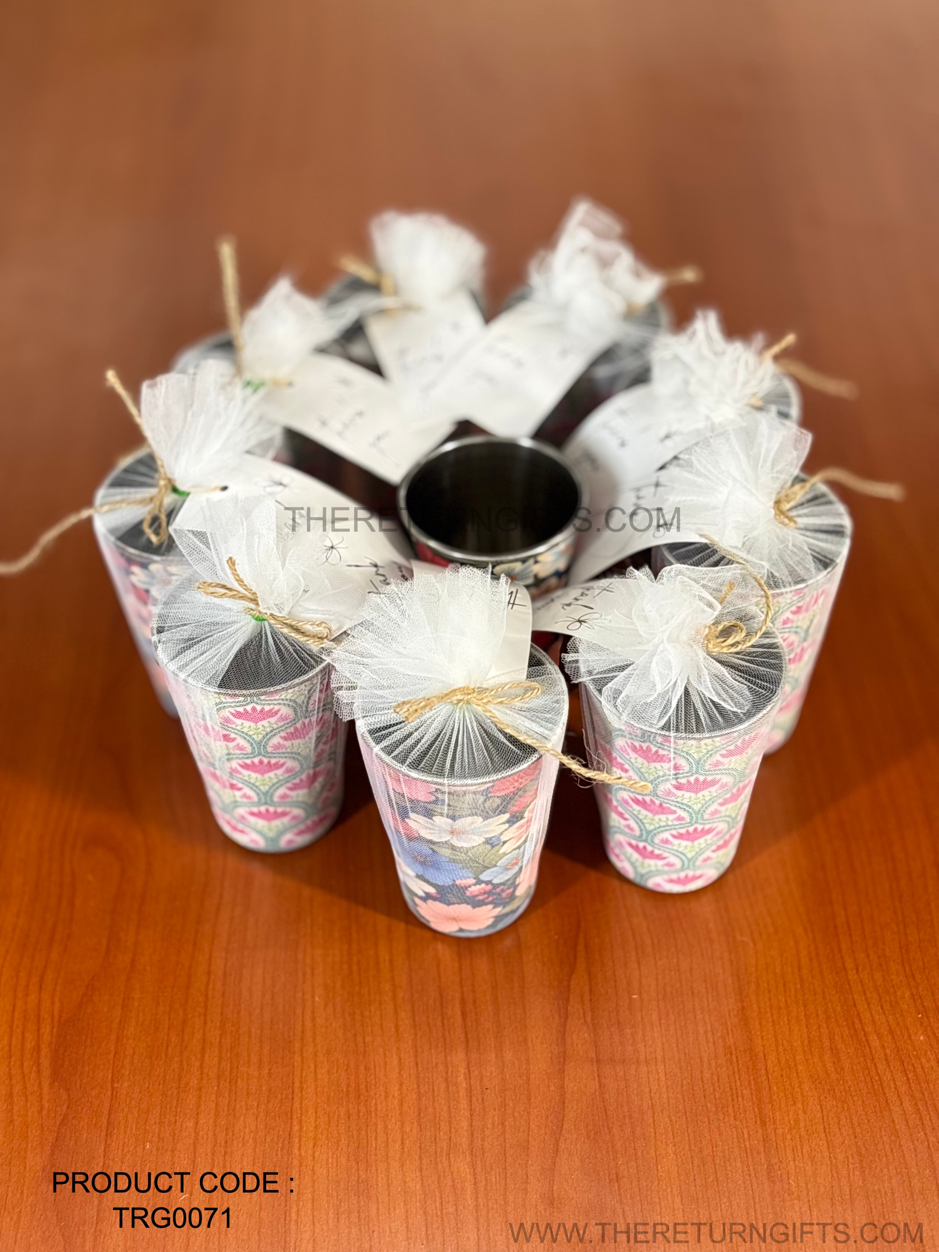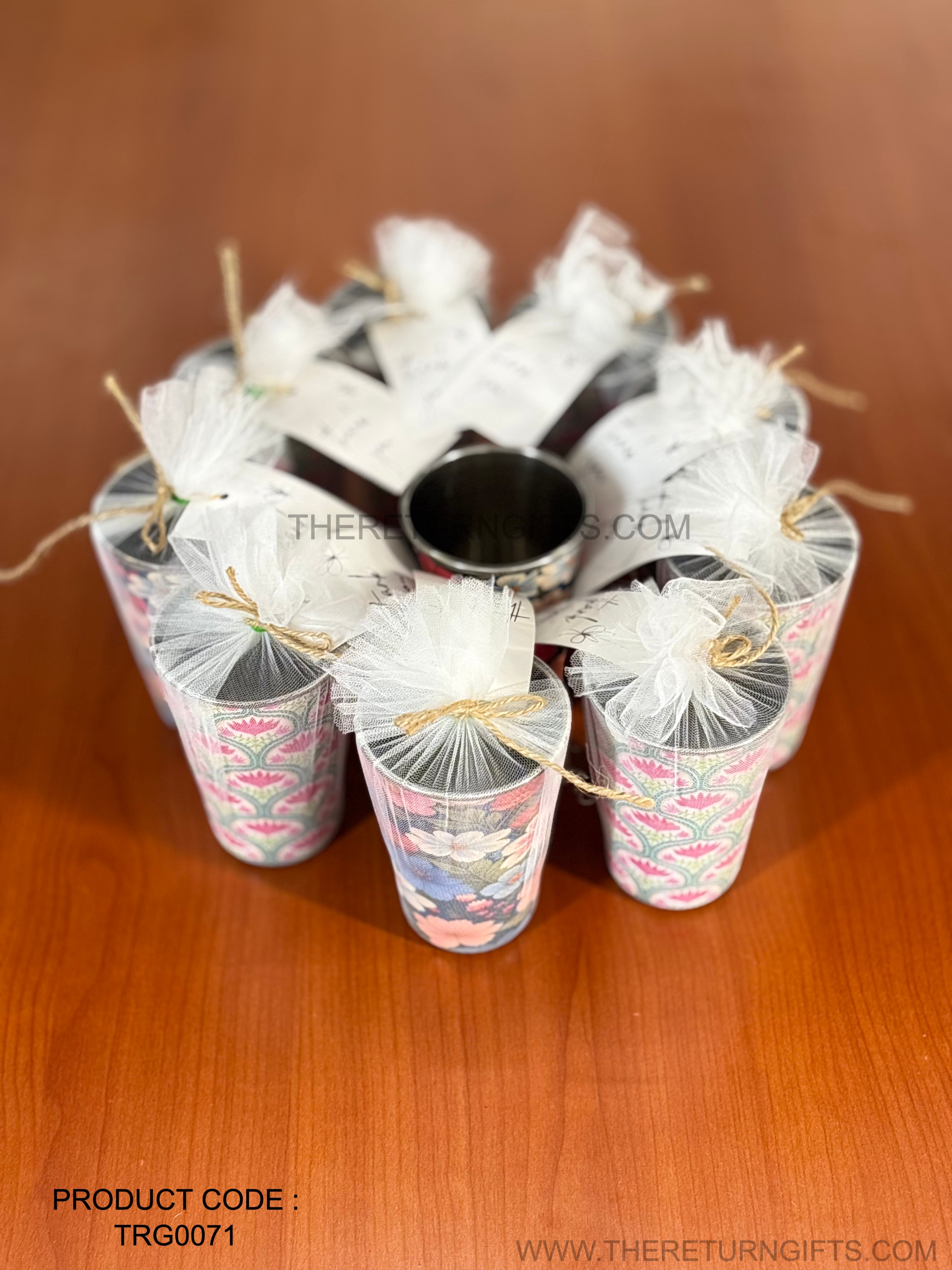 Printed Steel Glass | TRG0071 | Colorful Printed Stainless Steel Drinking Glass Under ₹200 | Durable Kids & Family Use Glass, Ideal Return Gift