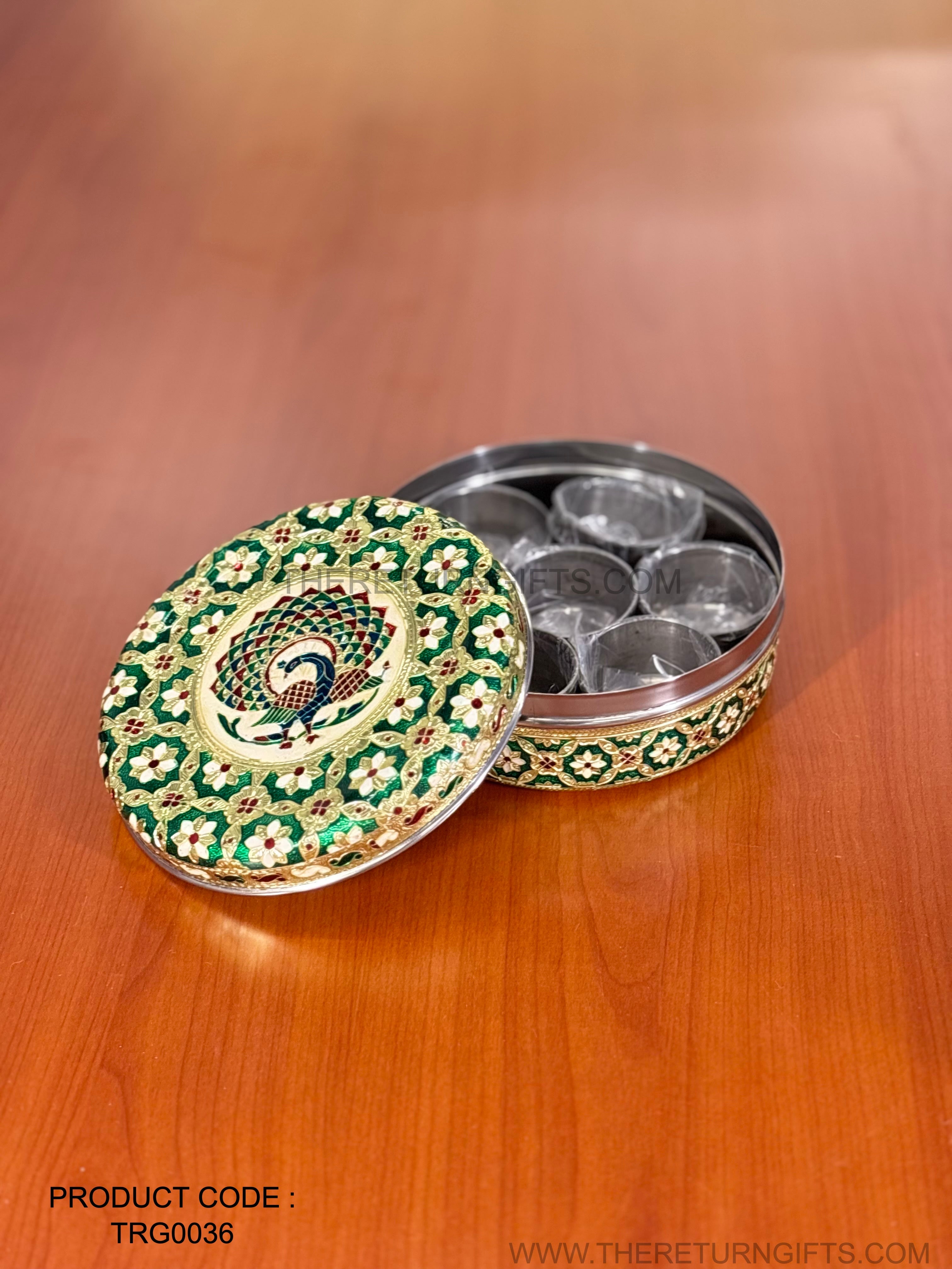 Round Meenakari Spice Box with Cups – Elegant Return Gift This round meenakari spice... Read more