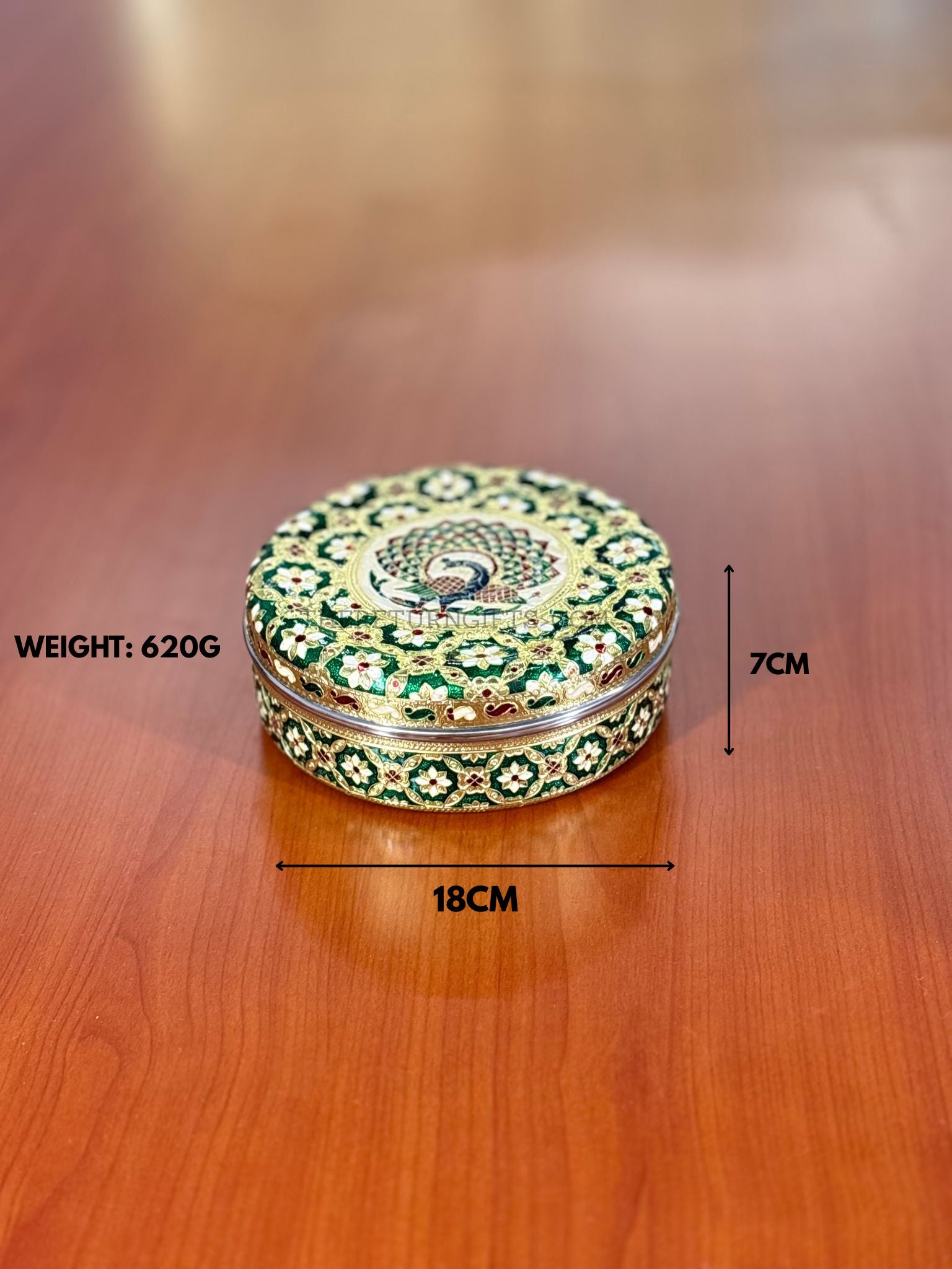 Round Meenakari Spice Box | TRG0036 | 8 Inch Stainless Steel Meenakari Masala Dabba with 7 Inner Cups & Spoon Under ₹500 | Traditional Kitchen Spice Organizer & Wedding Festive Return Gift