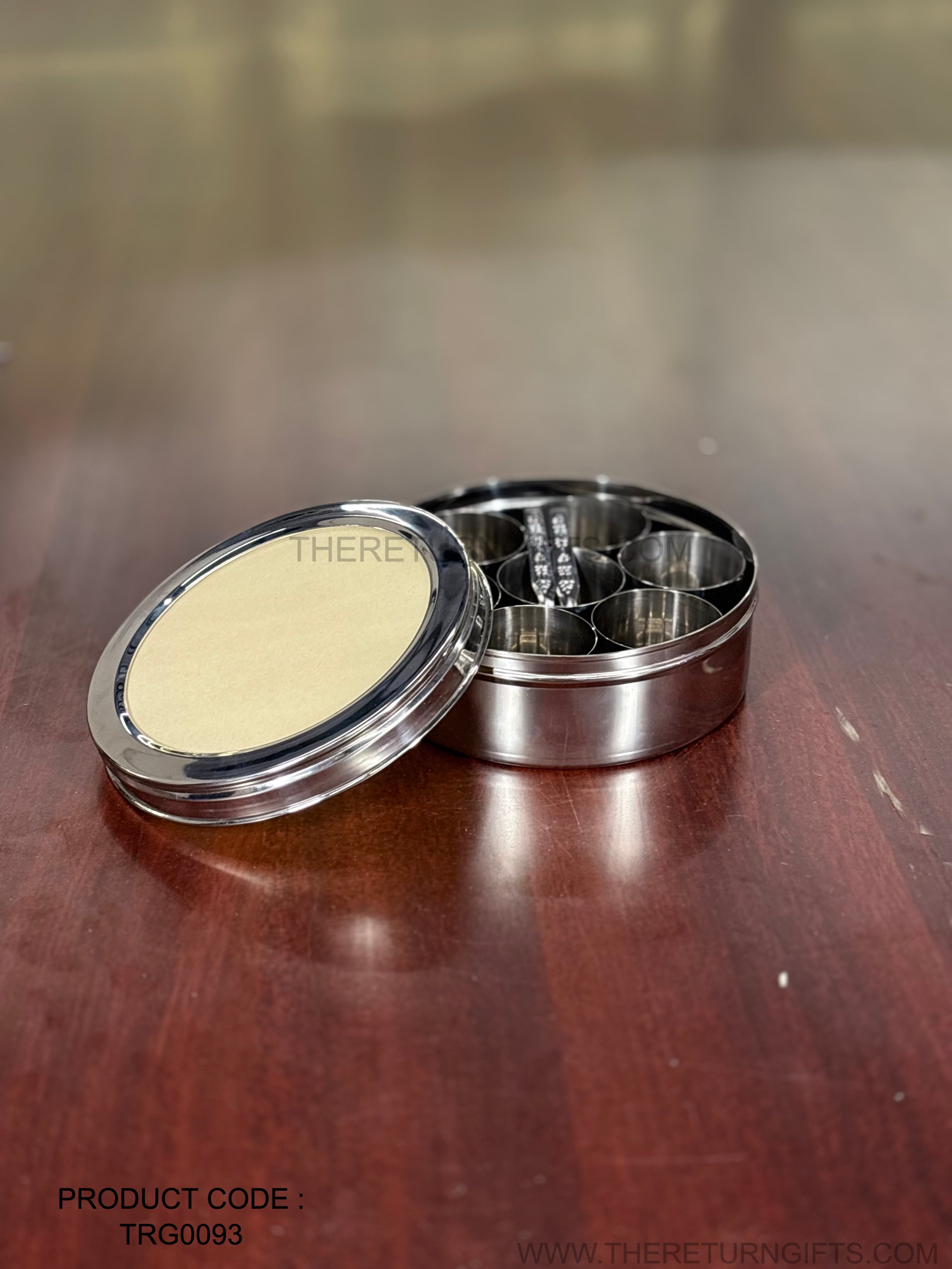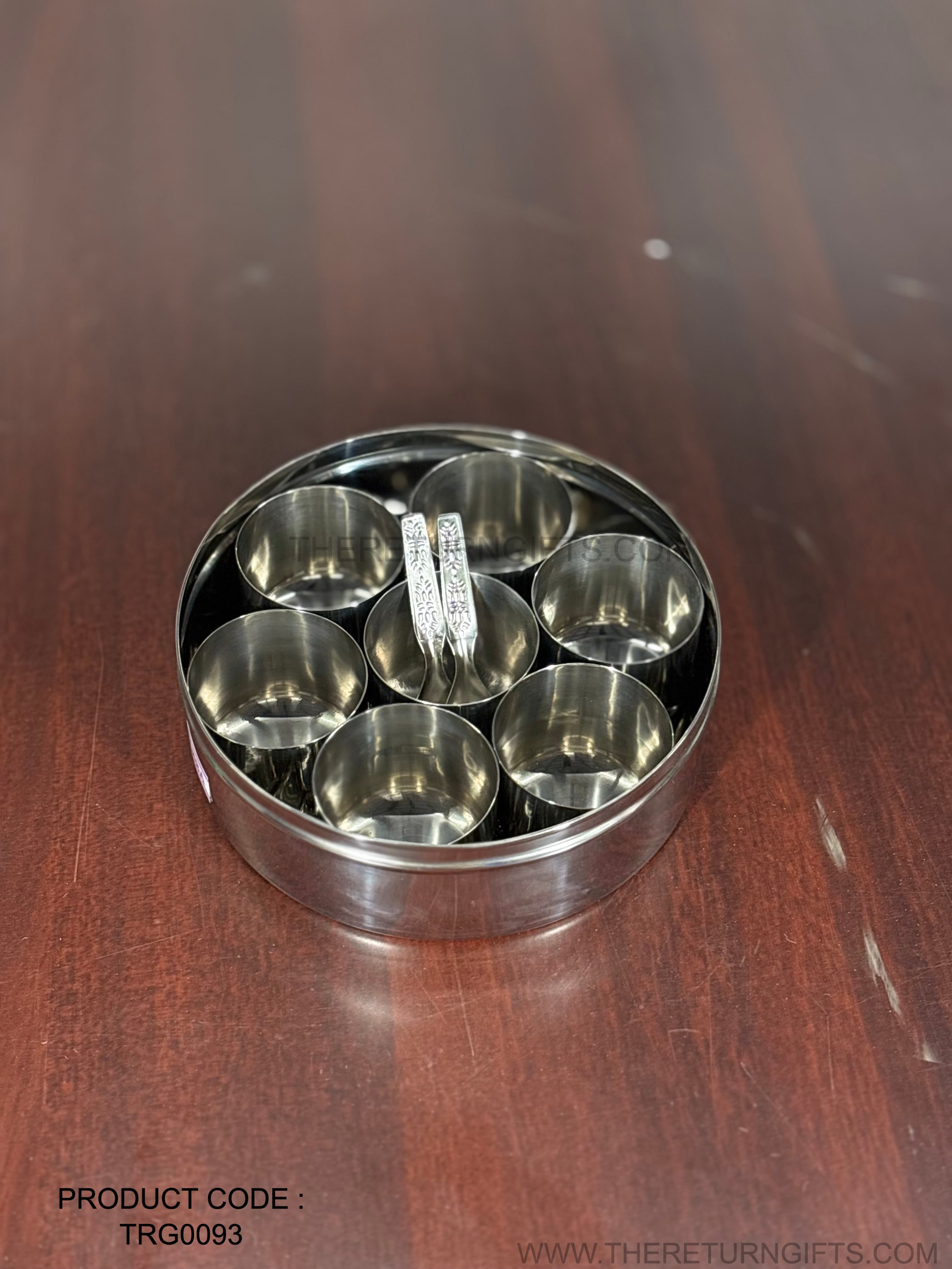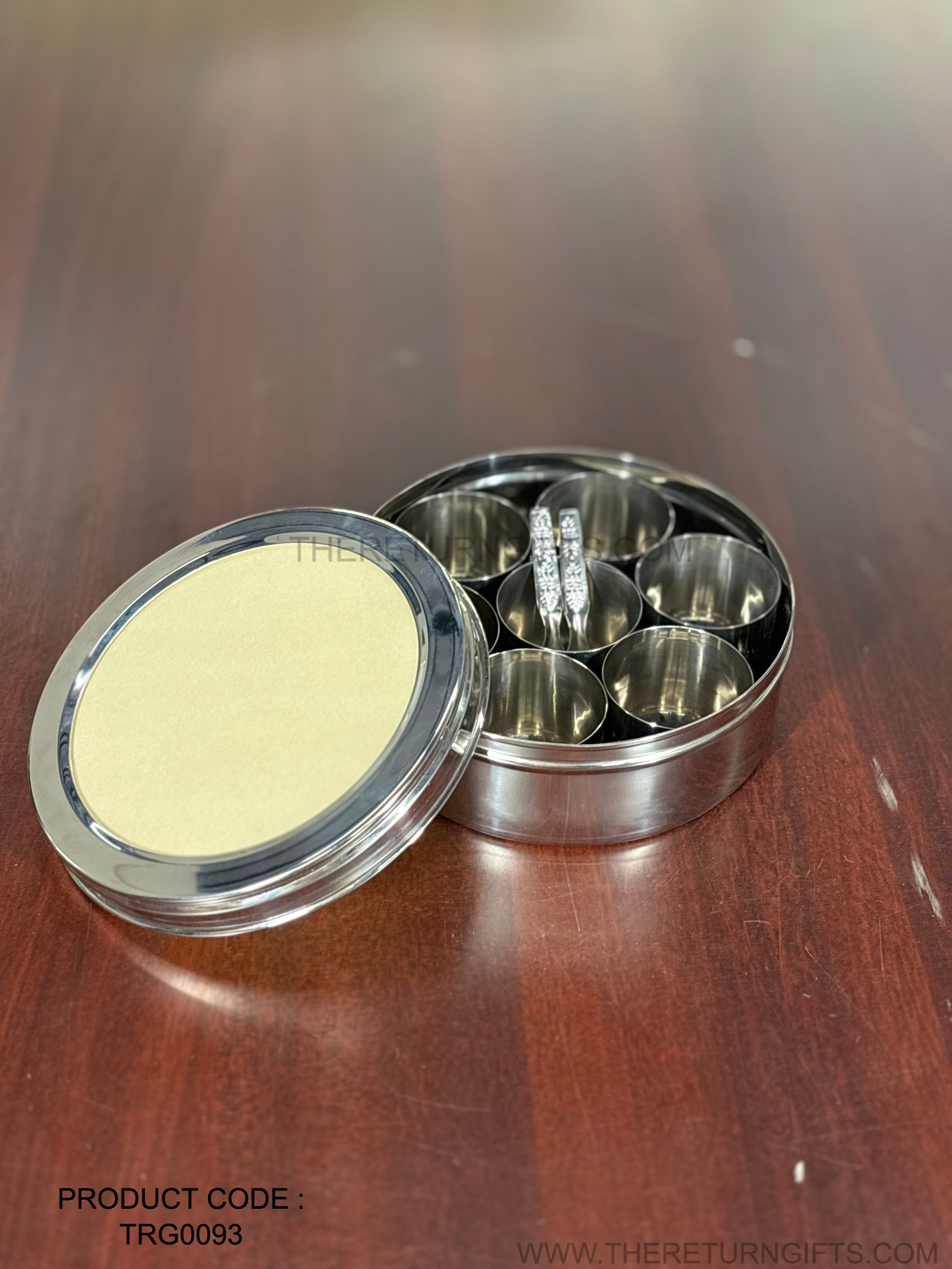 Premium Stainless Steel Spice Box with 7 Containers & Spoon – Premium Return Gift